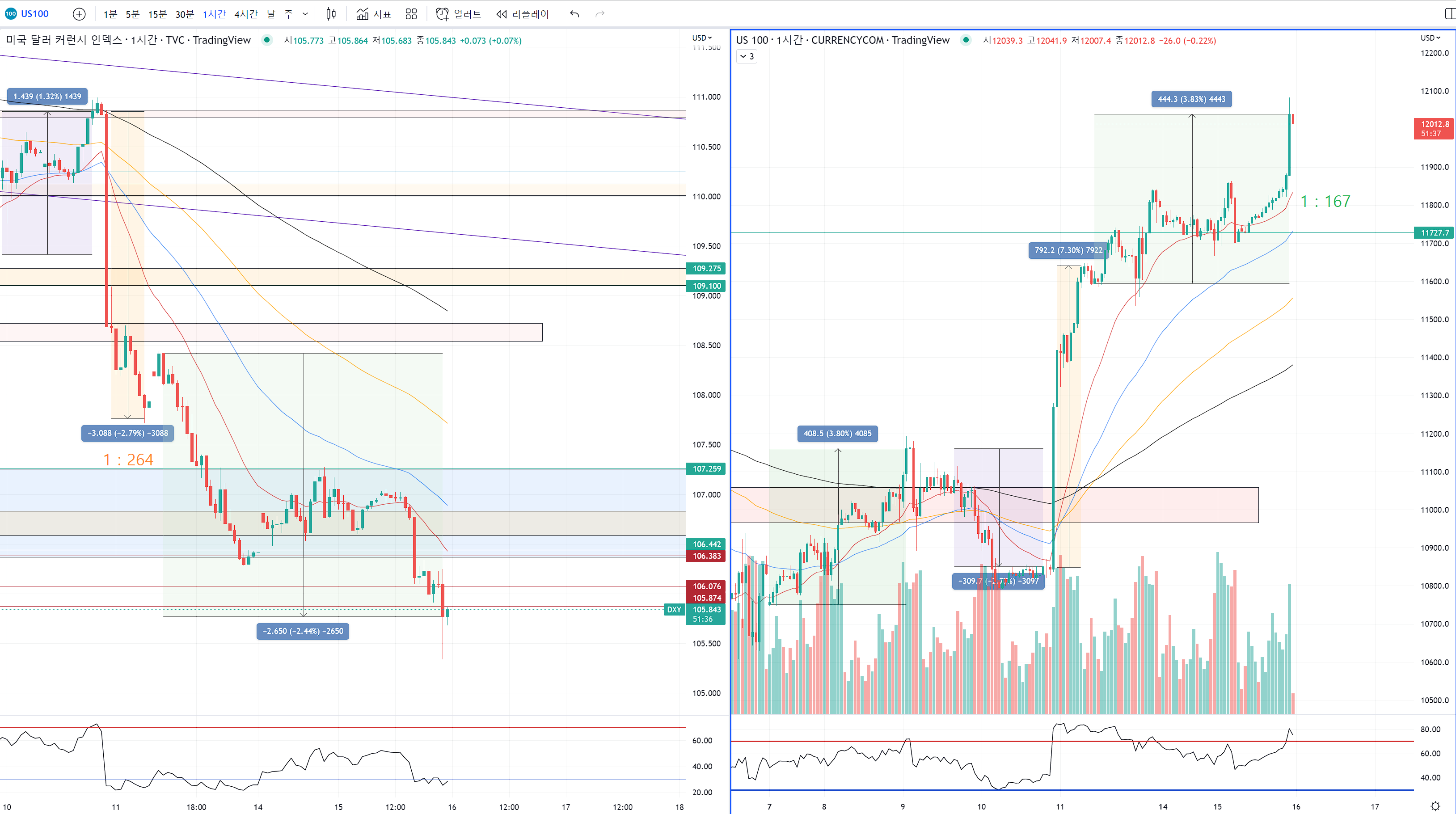 이건 이제 달라가 상승할때 나스닥이 어떻게 하락하는지까지 봐야해요.