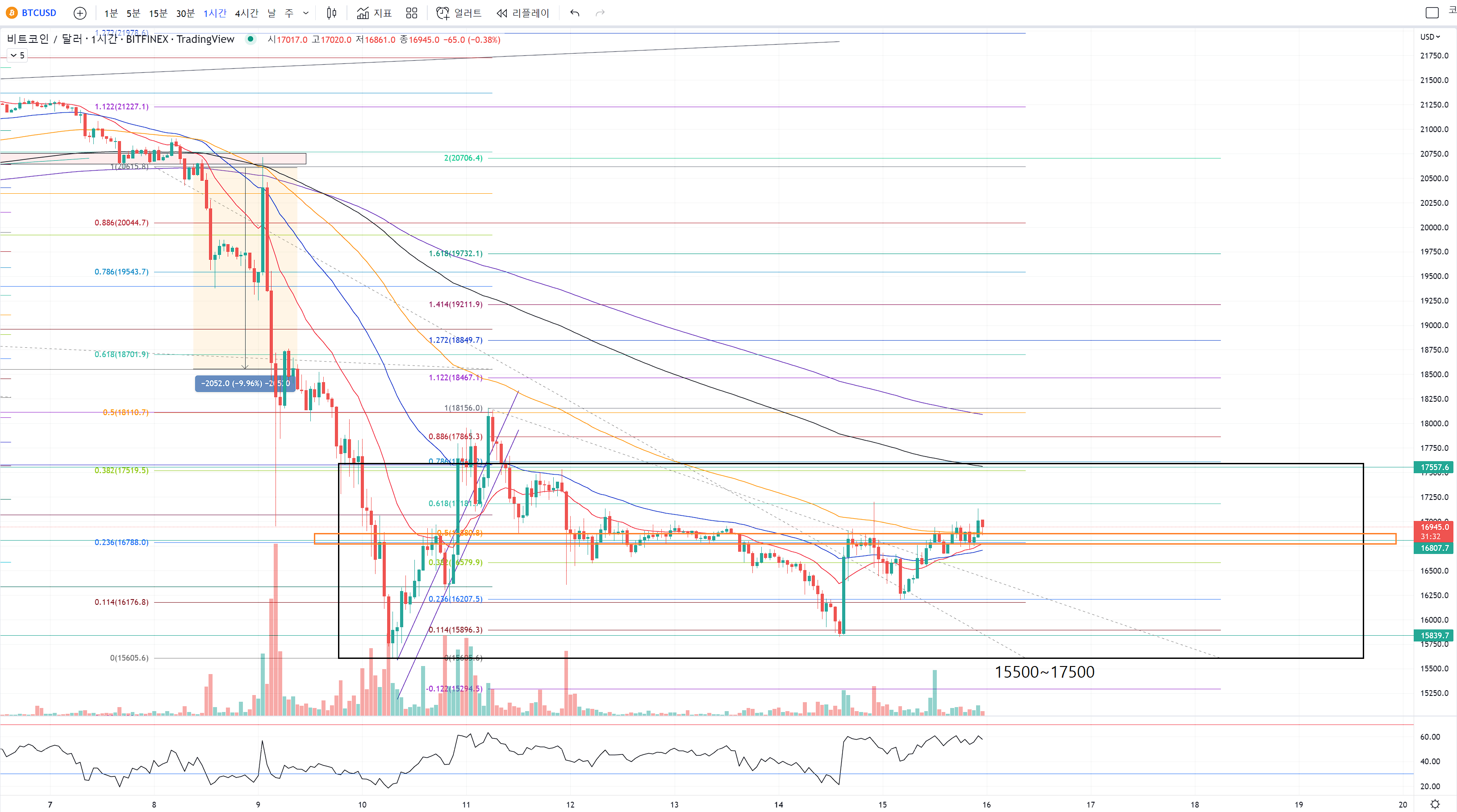 비트코인은 15500~17500 베이스 캠프를 얌전하게 차릴 준비를 하고는 있지만