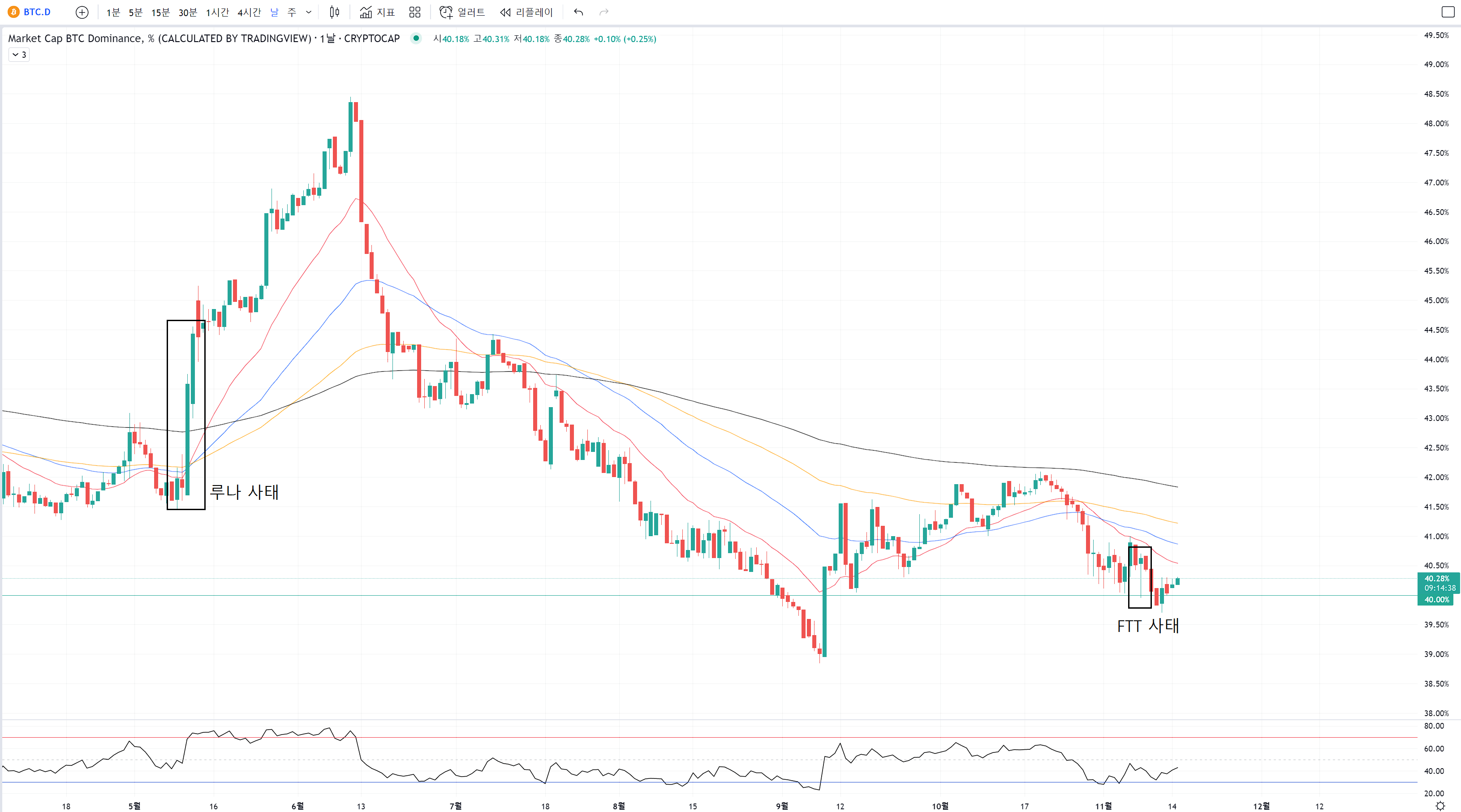 그런데 FTT가 무너지던 날은 1도 올리지 못했습니다.