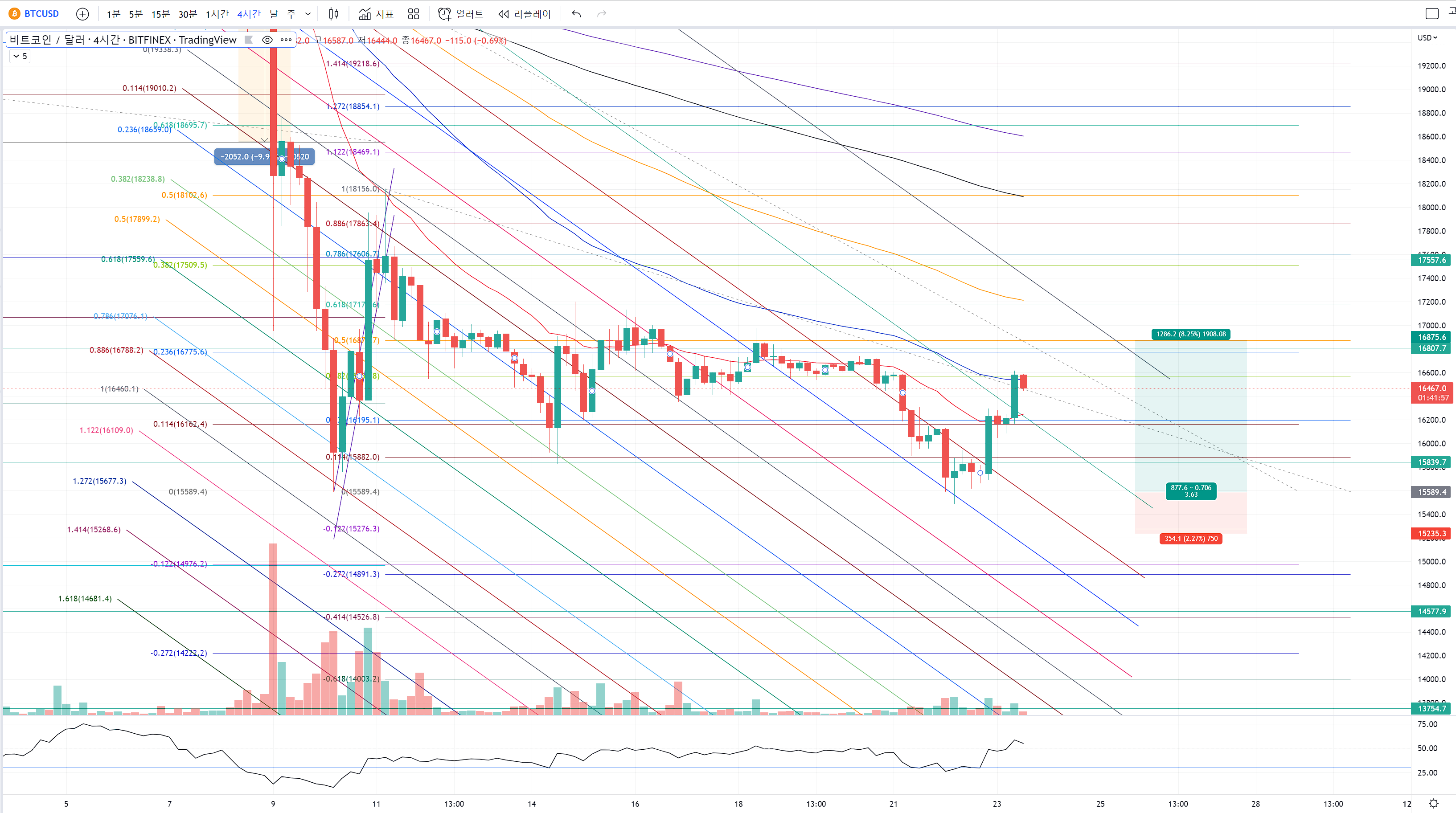 16800~900 피보나치 비율 0.5를 돌파하는것이 목표입니다.