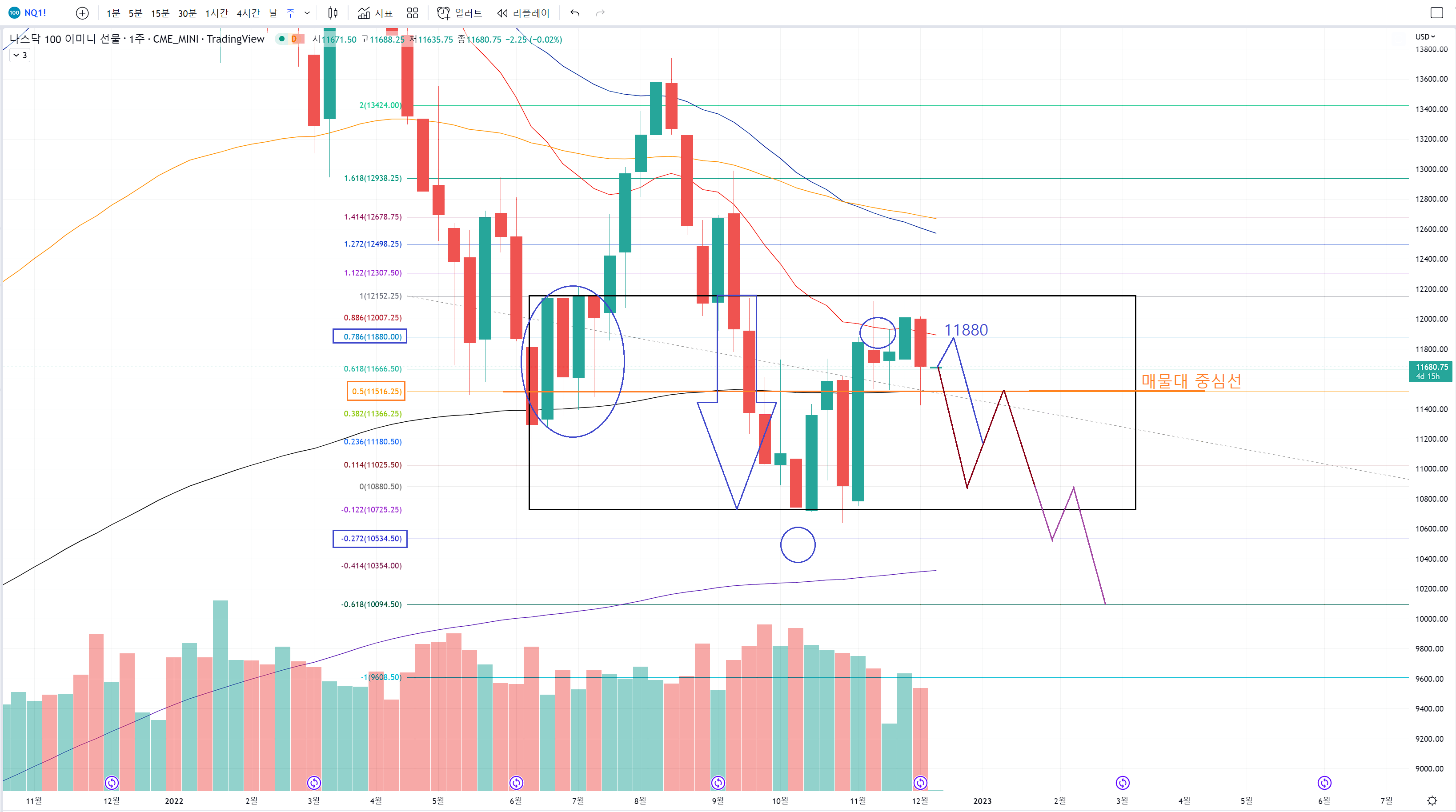 그걸 나스닥에 응용해보시면 매물대 처리로 넘어간 11월 이후 시점부터 보면