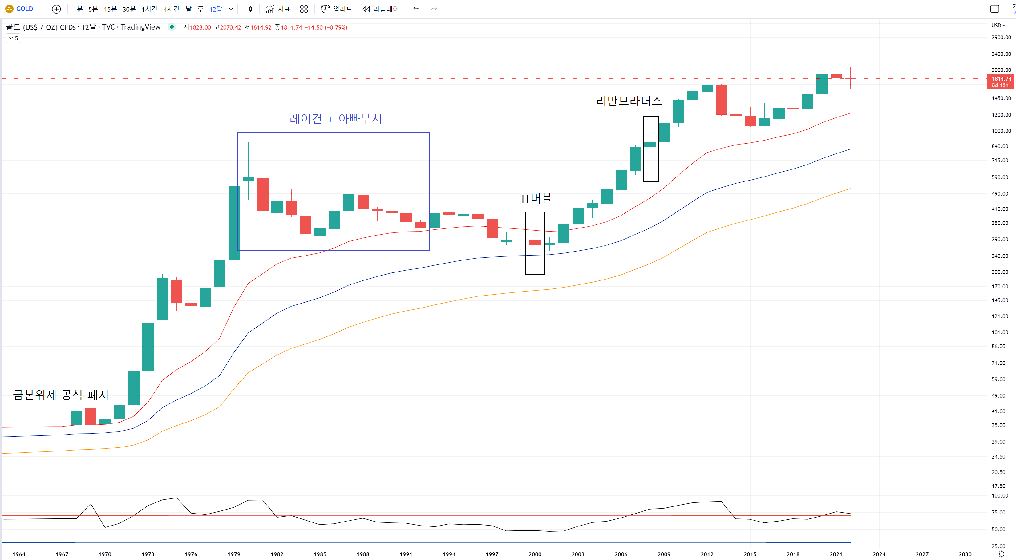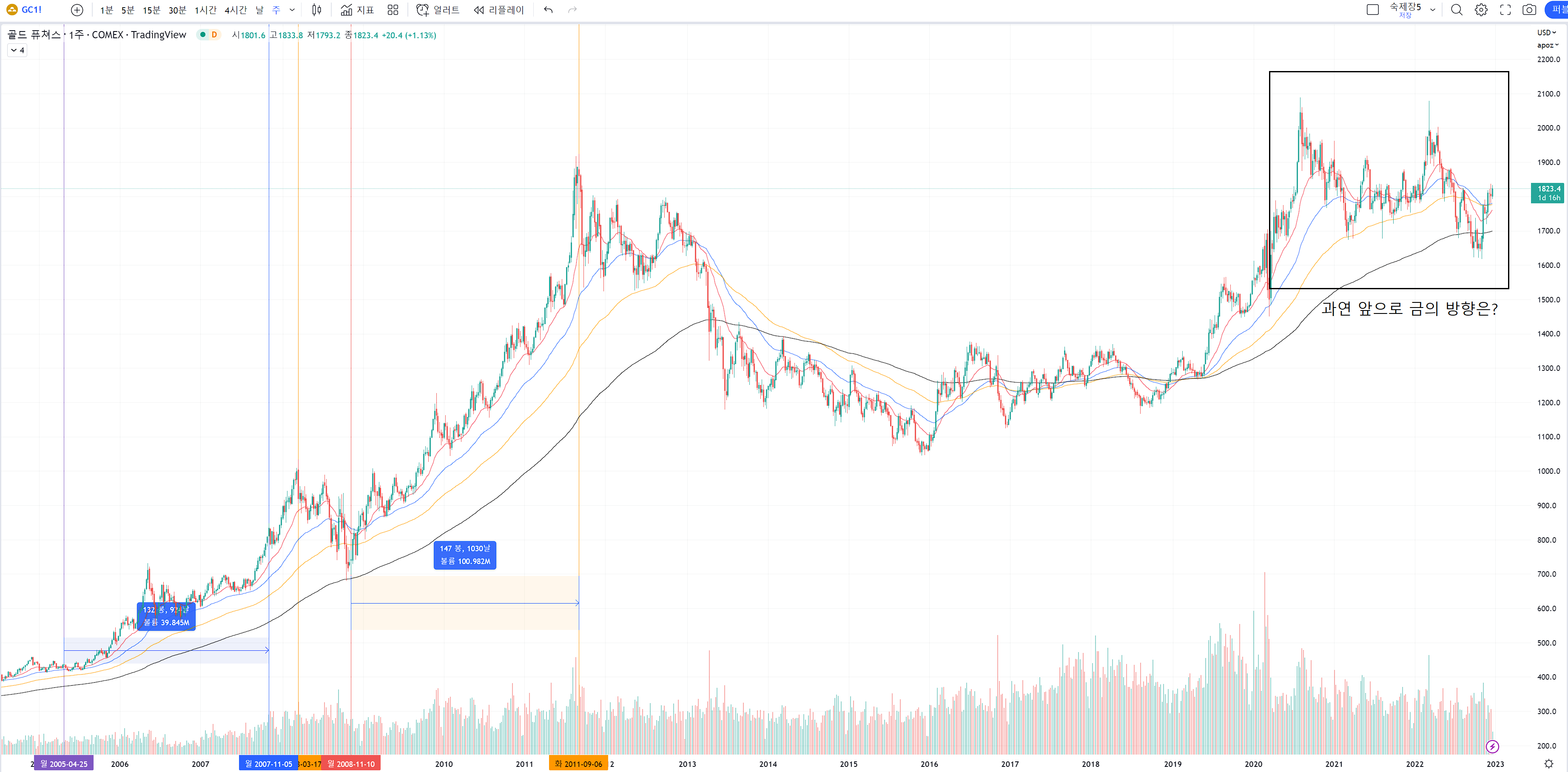먼저 경기가 거품이 끼고 빠지던 시기의 차트를 보며 골드 차트의 특성을 알아볼께요.
