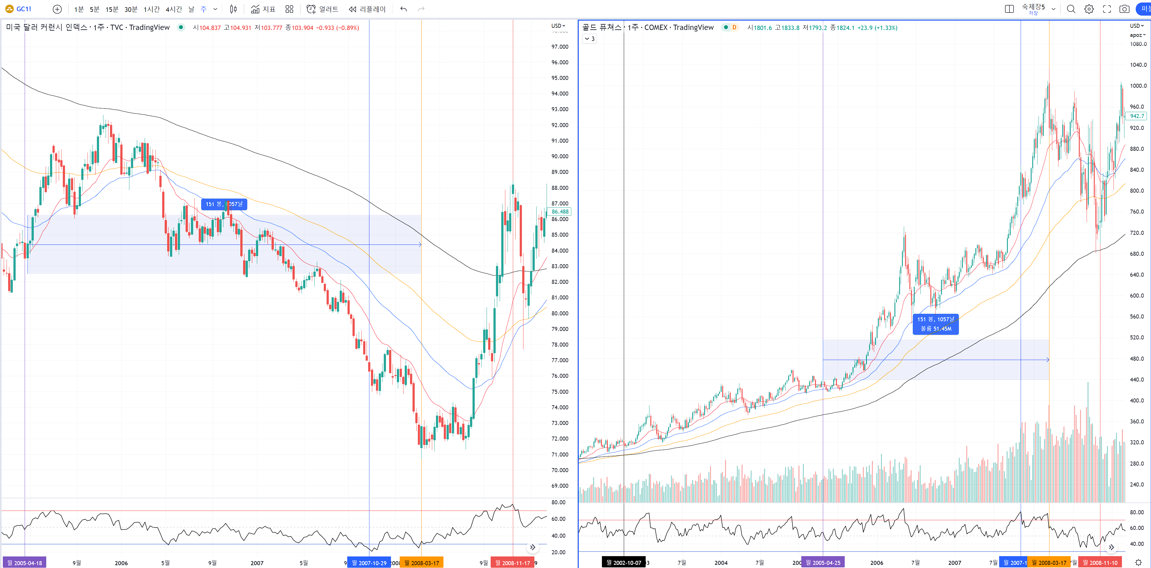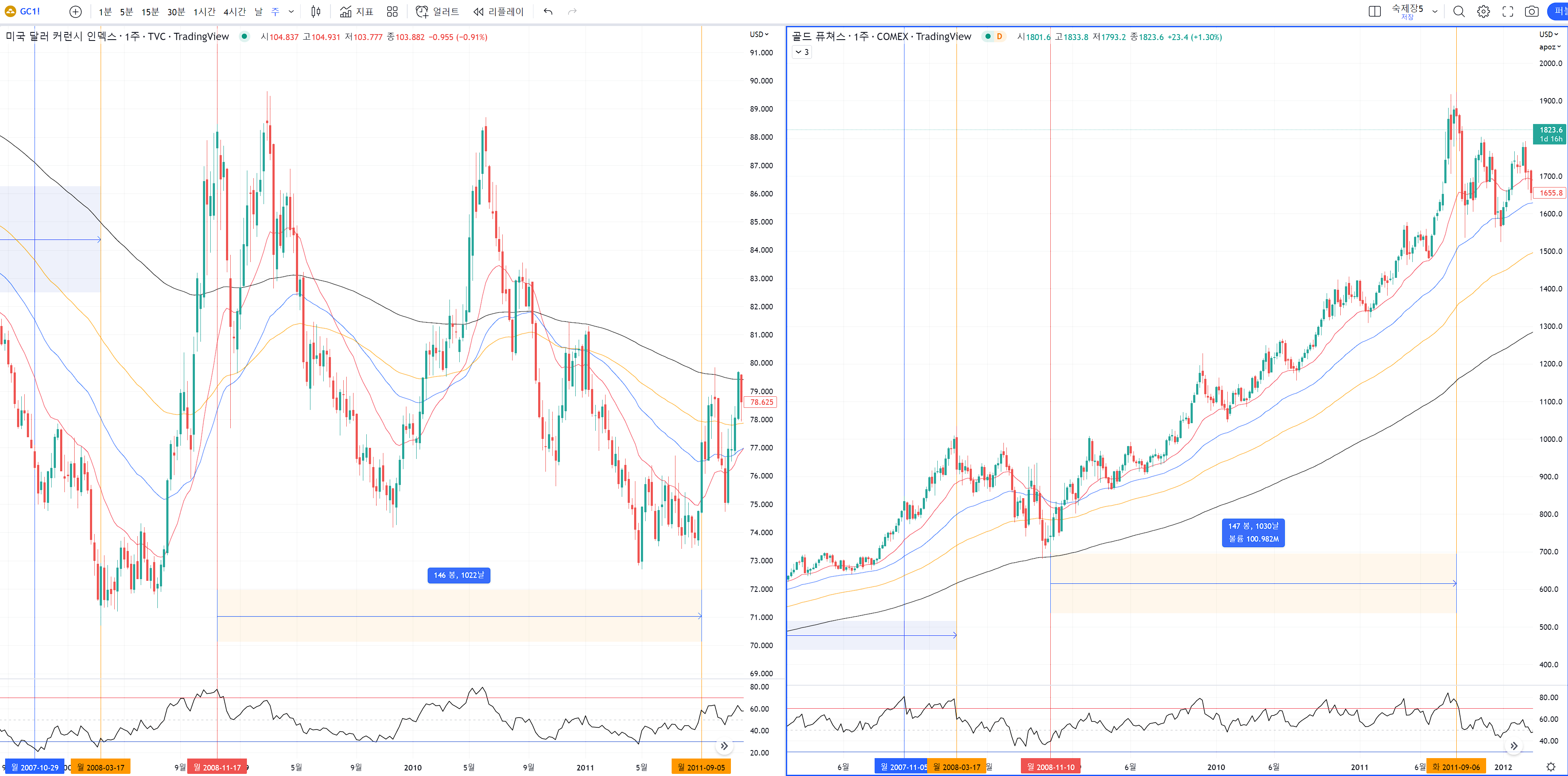 달라가 최저점을 찍을때가 골드의 최고점이었습니다.