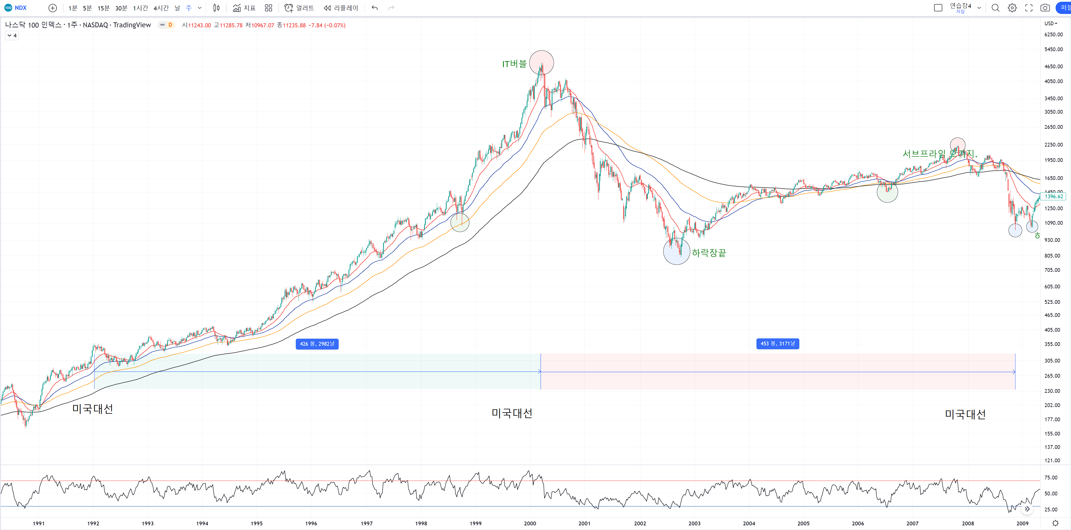 IT버블의 거품을 위해 1994년부터 상승장 초입으로 시작했어요.