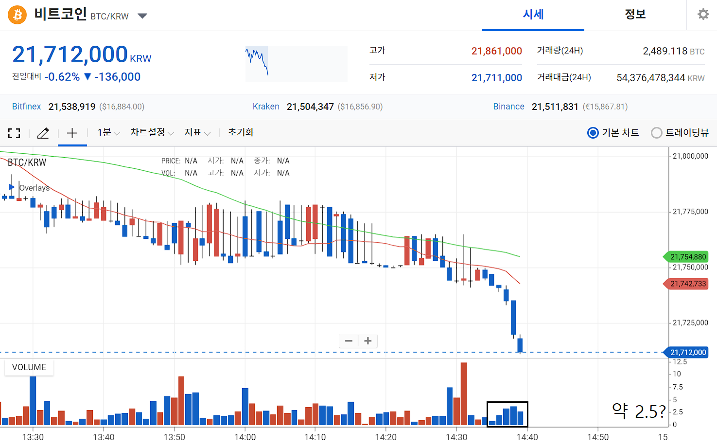 차트의 거래량에 맞춰 체결됐다고 표시되는 숫자가 맞는지 확인하려고 계산했습니다.