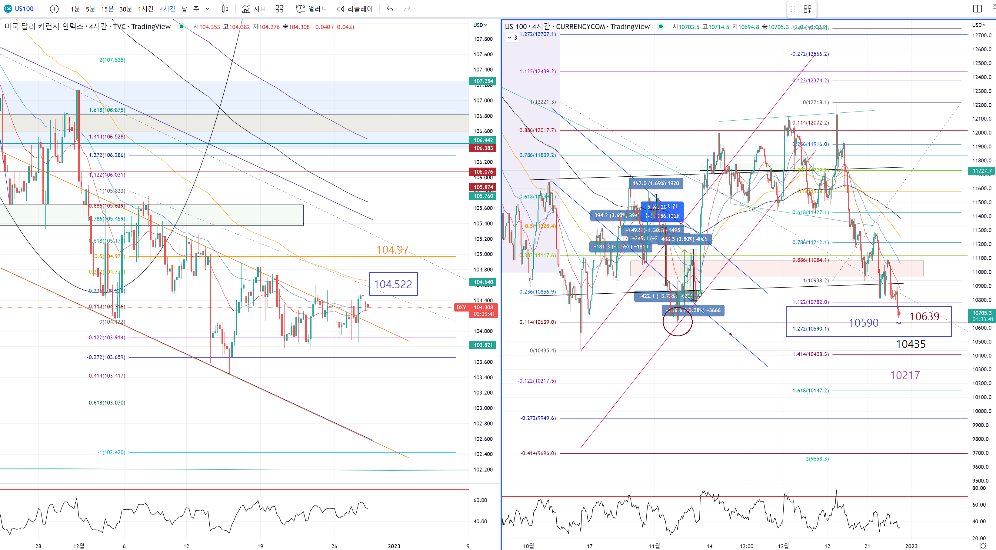 104.522를 돌파하지 않으면 나스닥이 무난사게 10590~10639을 지켜줄 수 있습니다.