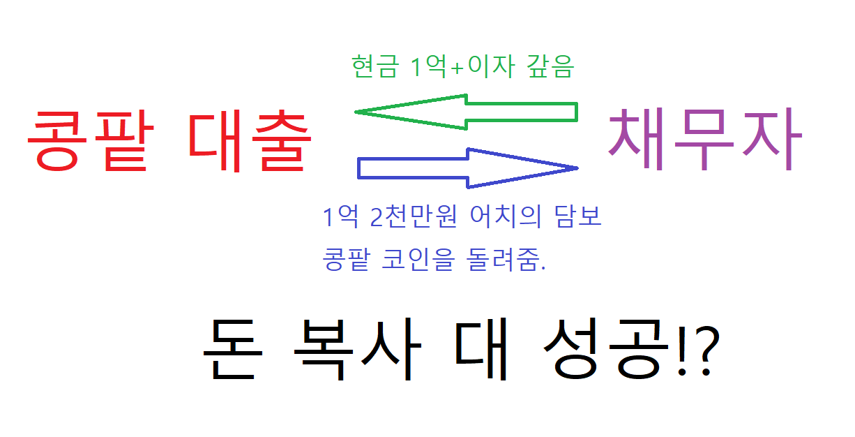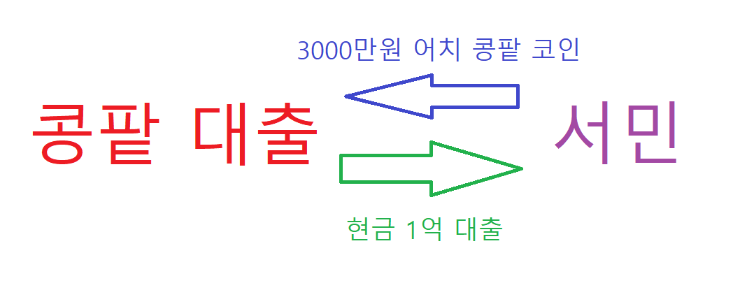 어쨌든 이렇게 콩팥 코인을 일단 시장에 팔고 그걸 담보고 현금 대출을 해줍니다.