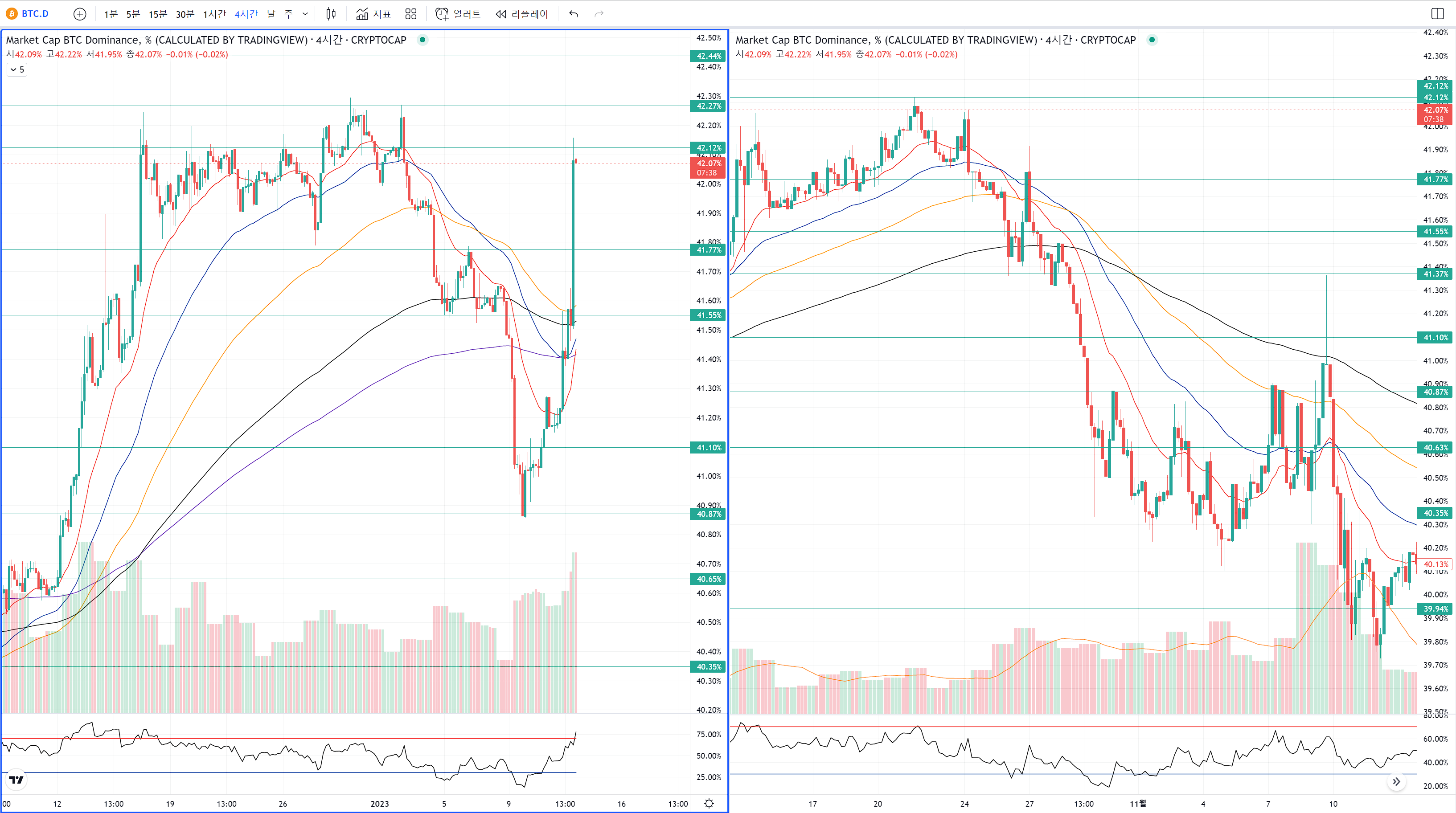 그런데 41.55를 넘어가면서 도미넌스 하락추세를 끝내는걸 확정 지었기 때문에