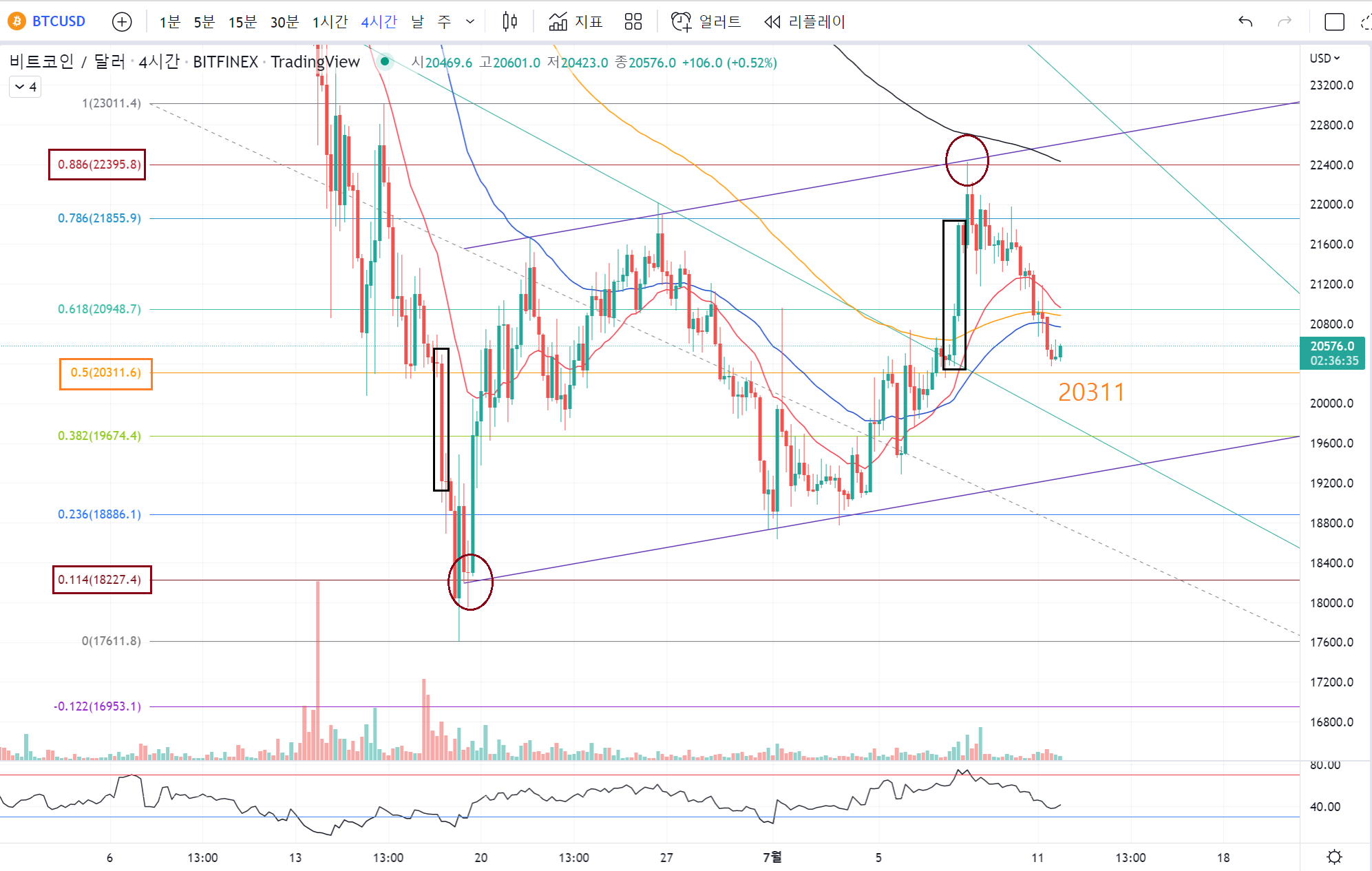 피보나치 비율 0.5인 20311을 기준으로 하는데(지금 스샷 보니 오타네요!)
