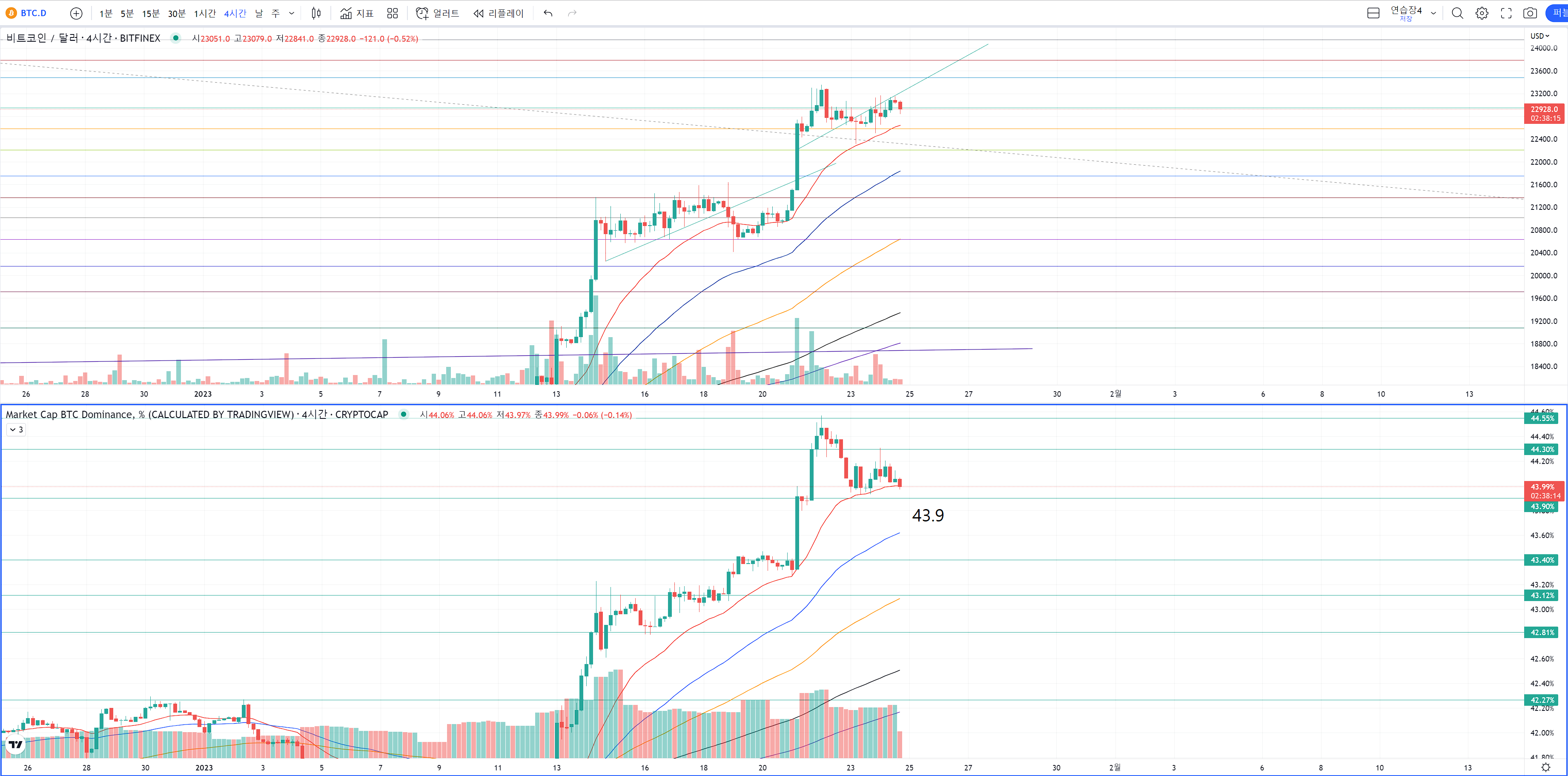 두번째 주의할 점은 지금 상황에서 도미넌스가 43.9를 무너뜨리면
