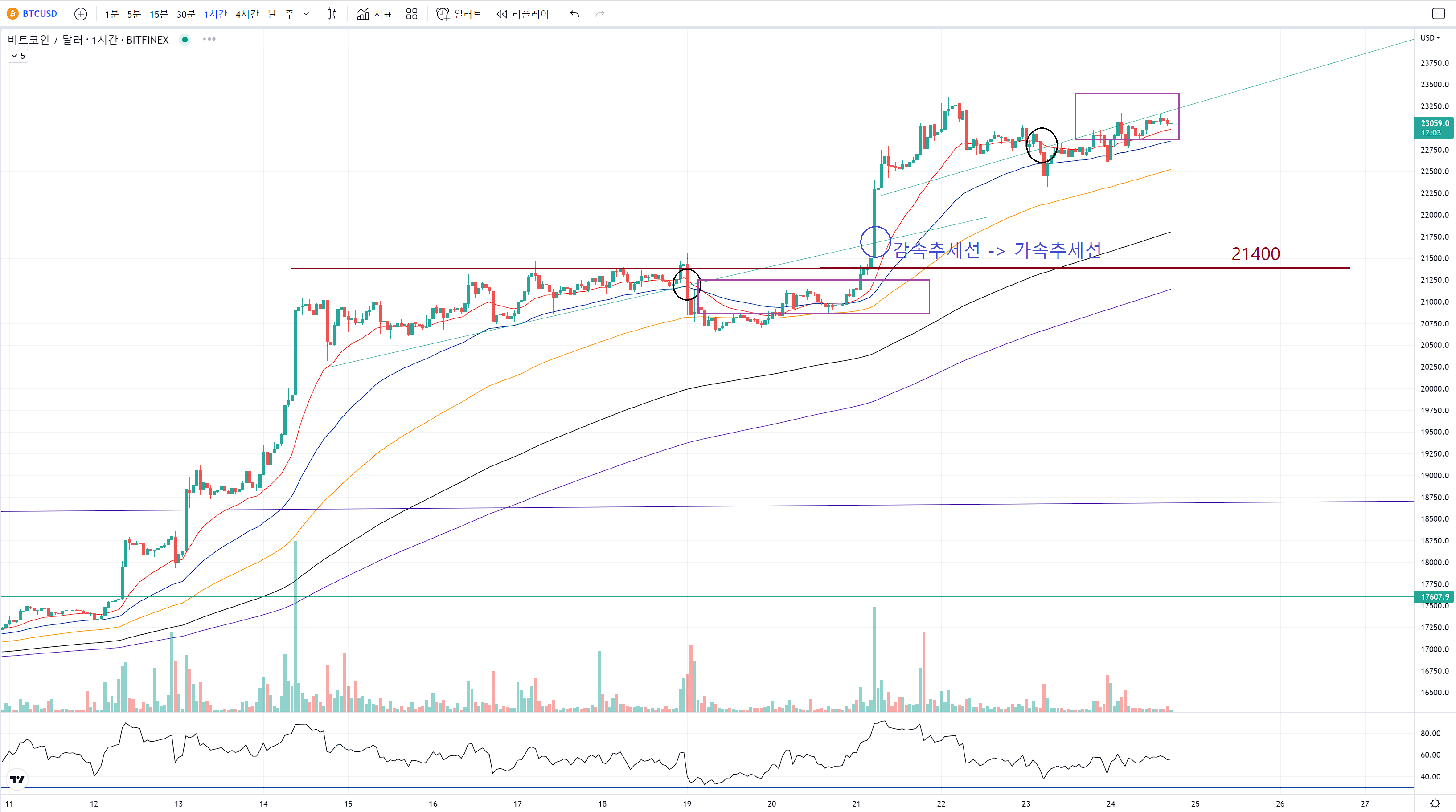 설령 비트코인이 매수에 안 좋은 모습을 보여도 21400을 무너뜨리는 것이 아니면