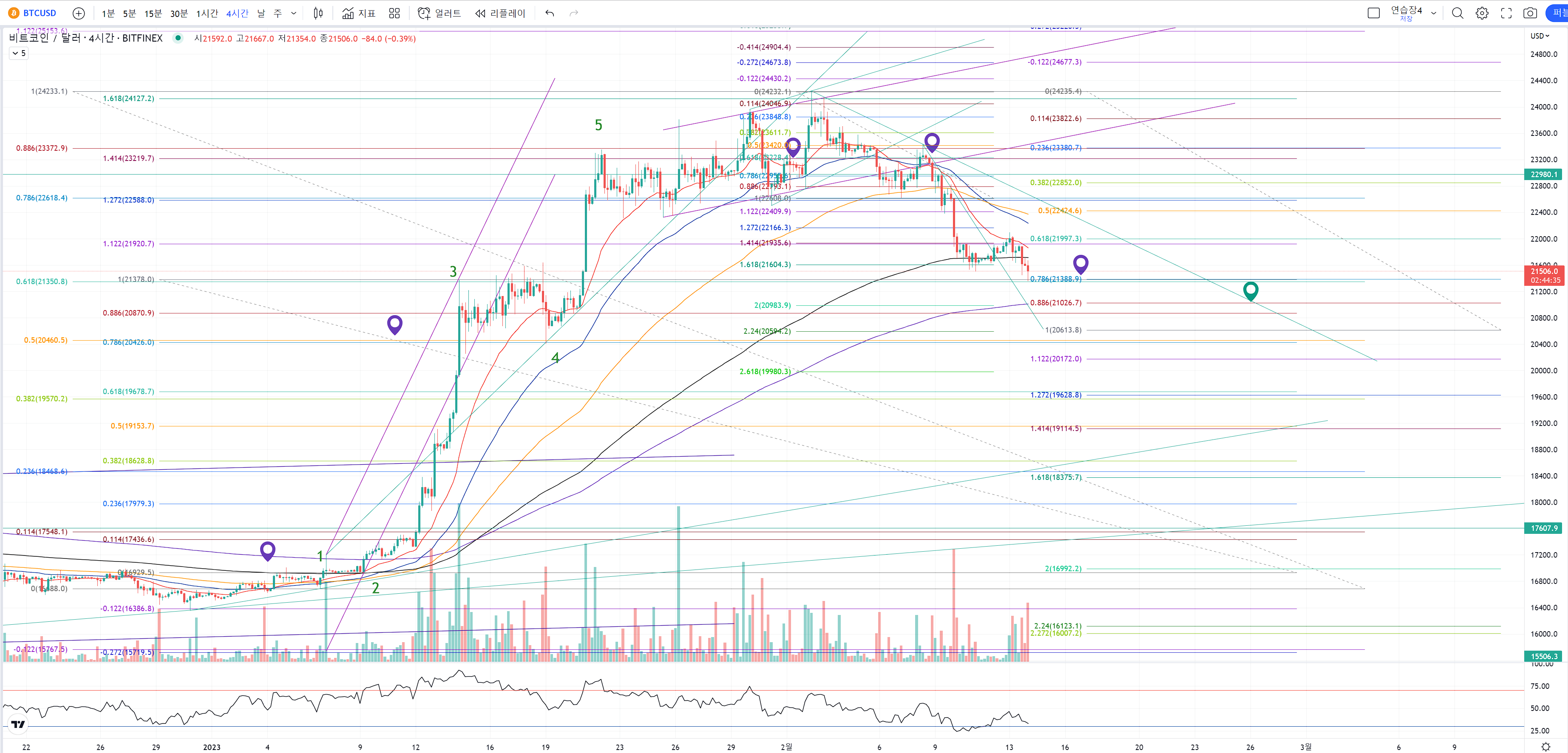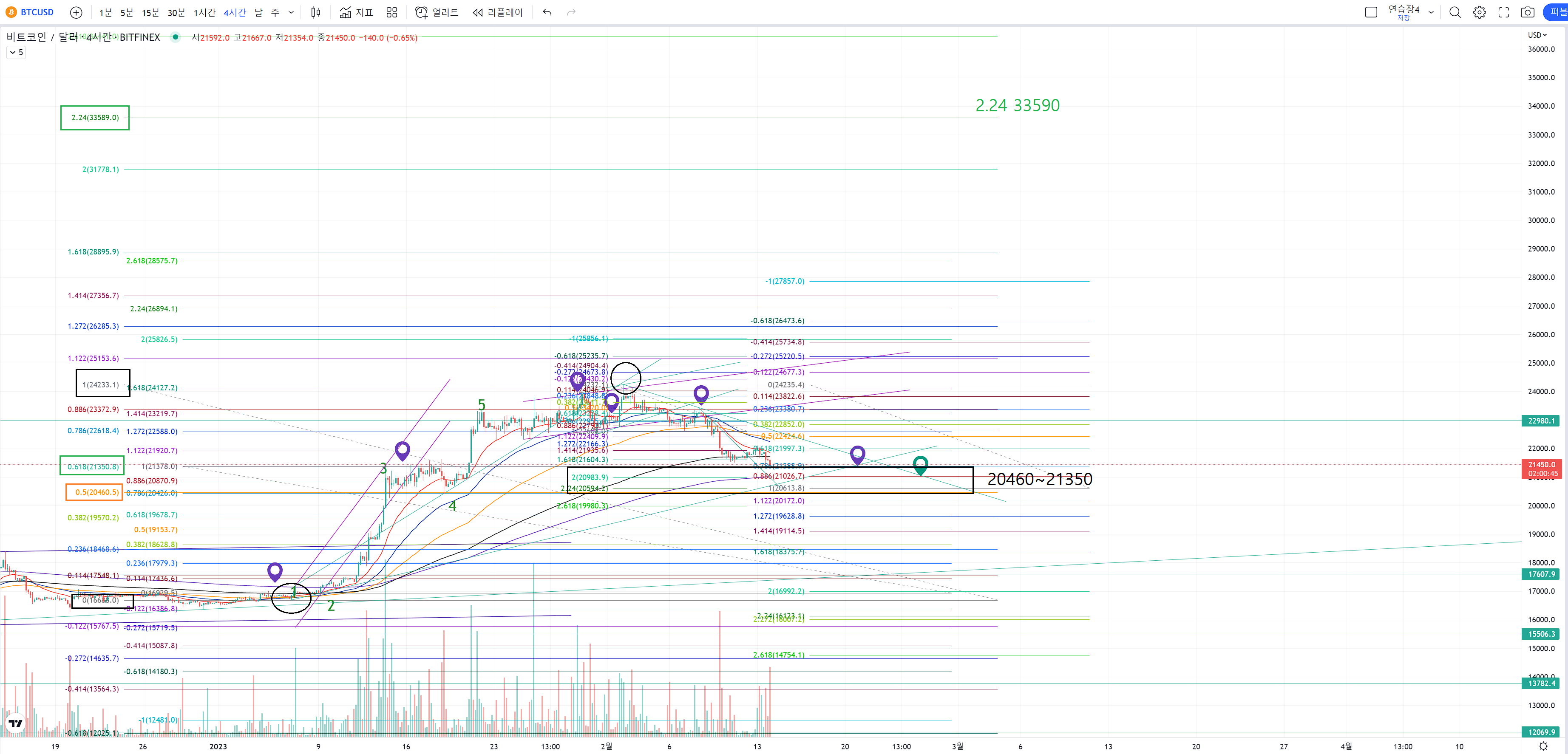 이 경우 다음 상승까지 5파동 계산의 끝을 2.24인 33590까지 기대를 해볼 수 있습니다.