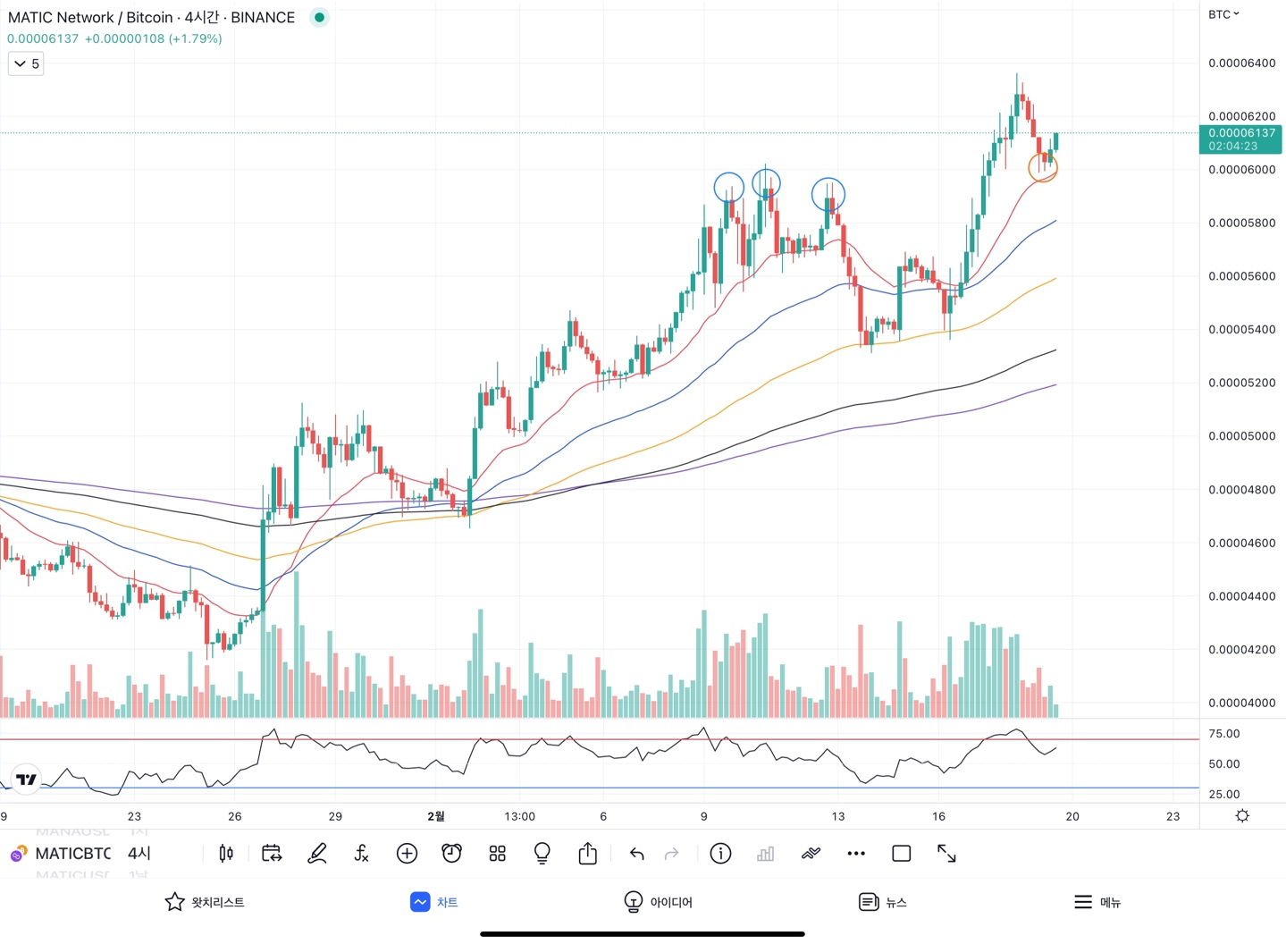 이런 차트는 조정에서도 4시간봉에서 rsi 과매도 터치가 없어서