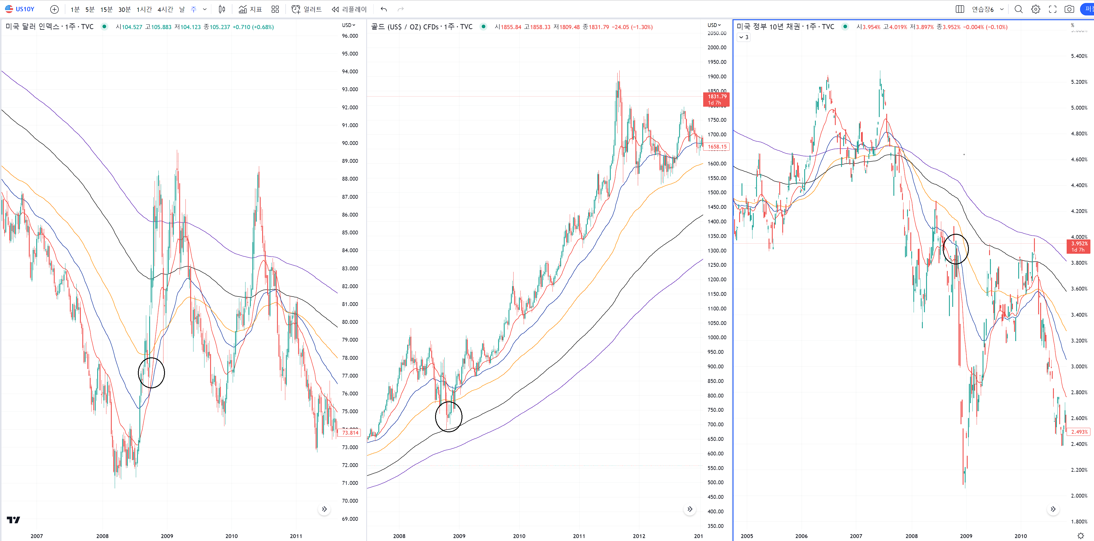 리만 브라더스 달라 / 금 / 미국 국채 10년물