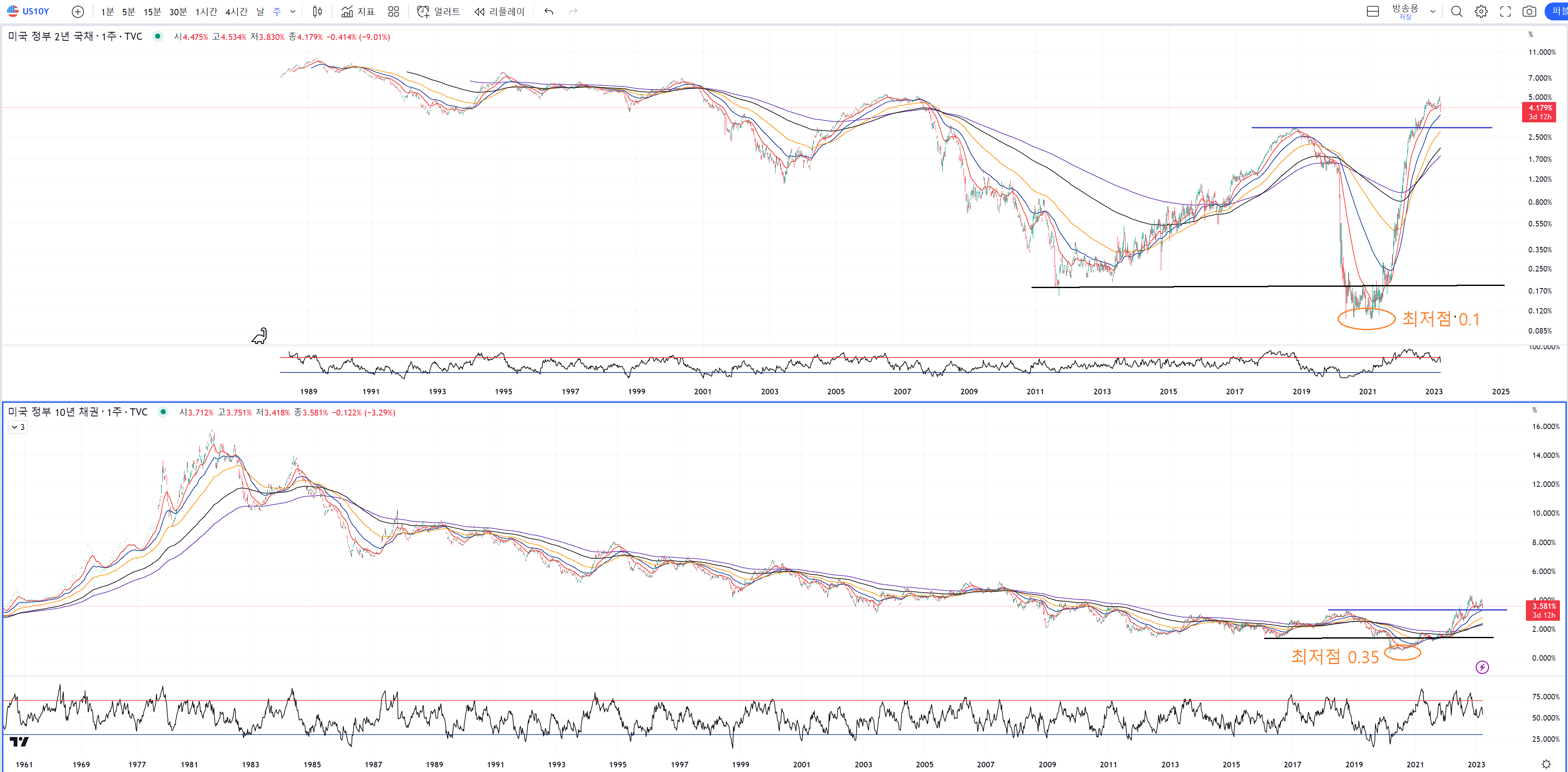 국채 금리는 1981년 최고점을 찍고 40년 가량 하락장이었습니다.