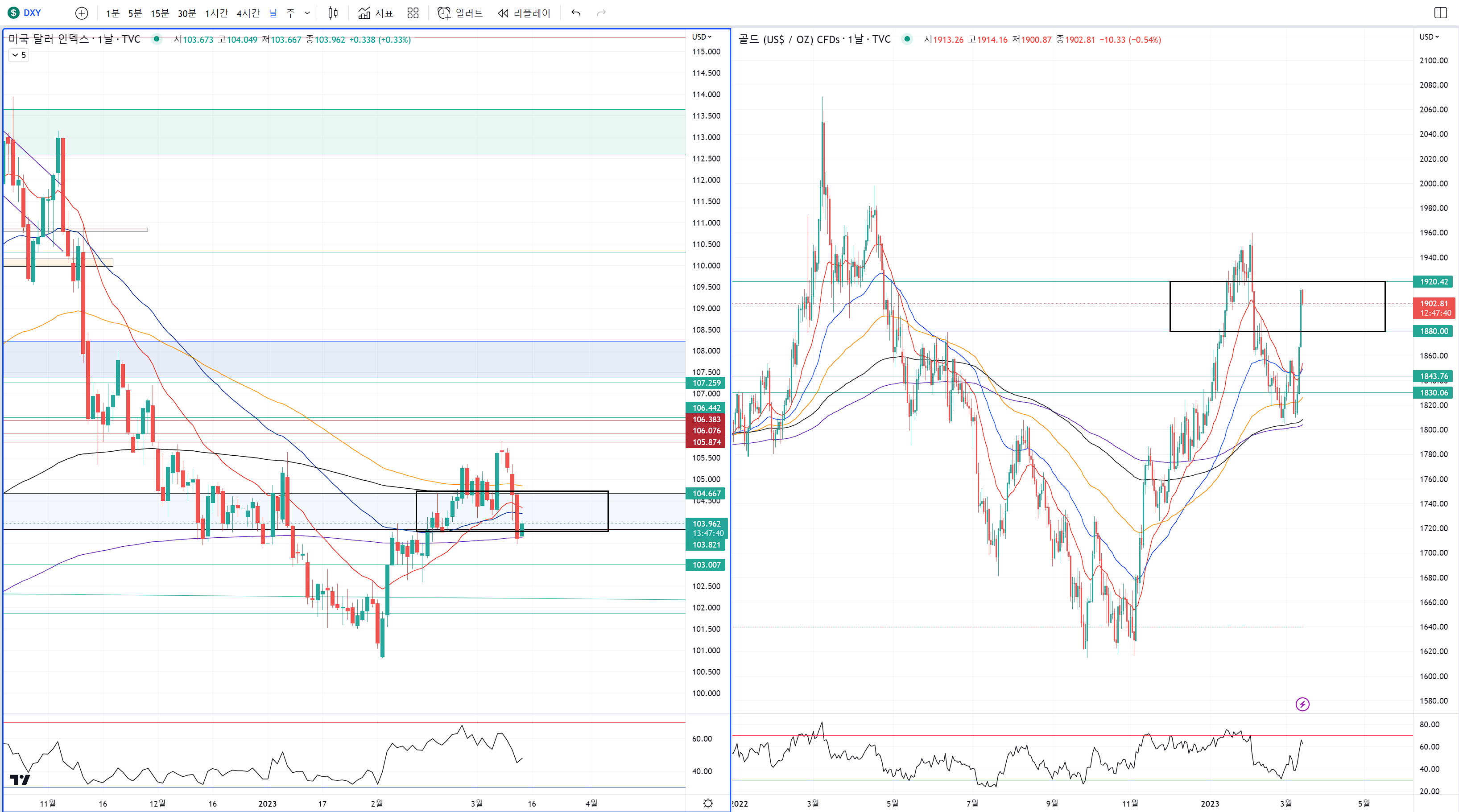 달라가 104.6을 먼저 돌파해서 상승하거나 금이 1920을 먼저 돌파해서 상승하거나 입니다.