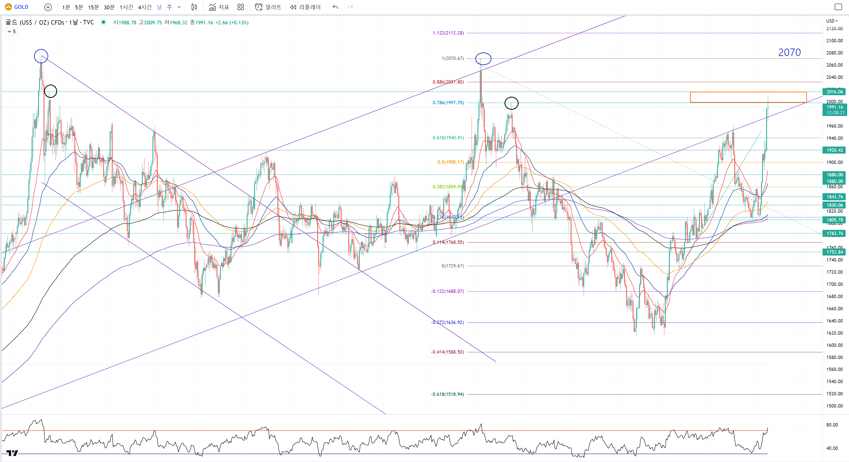 지금의 금 추세면 당장은 아니어도 2023년 한해를 볼때 rsi 관리까지 해주면서