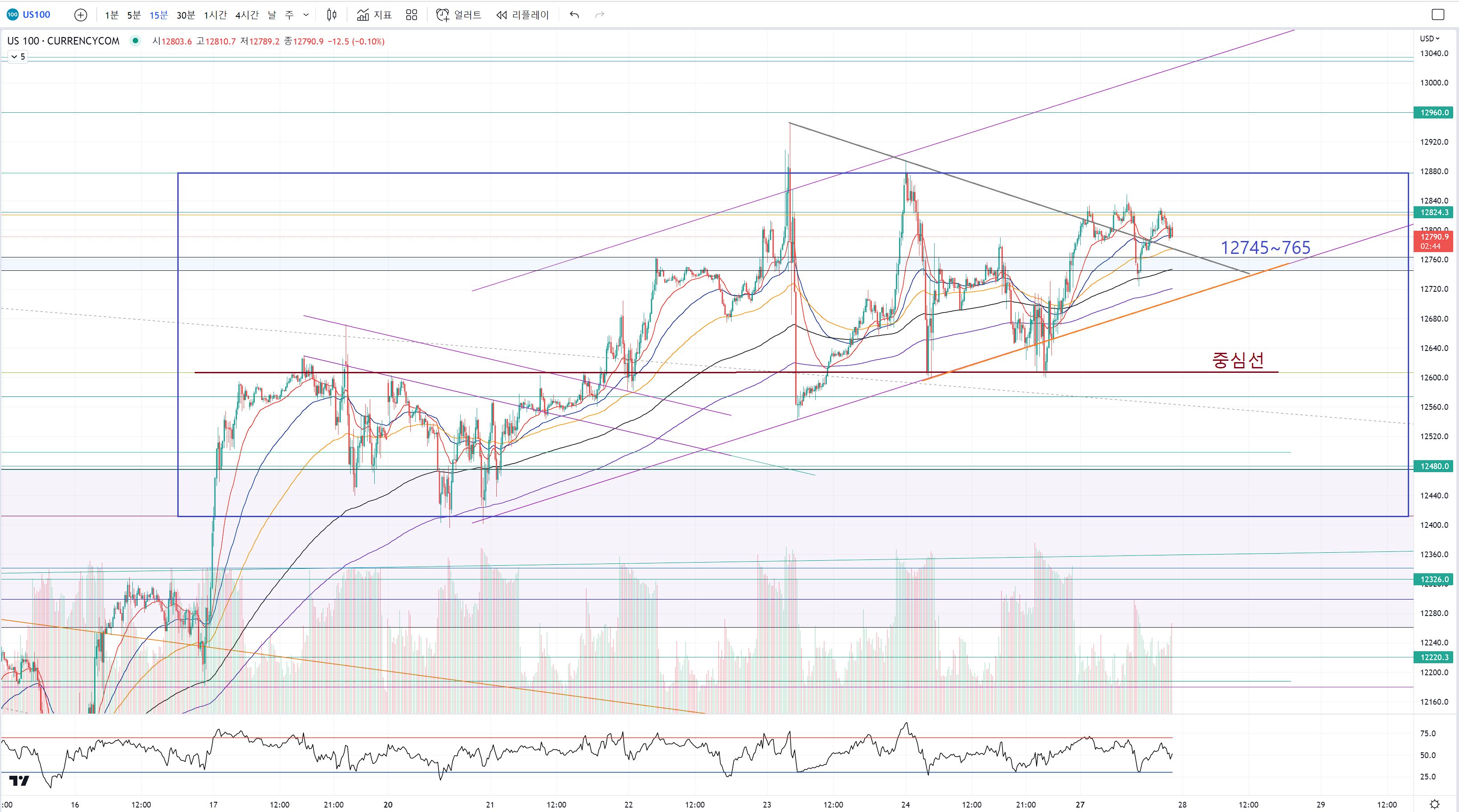 분봉 수준에서 당장은 매수에 좋아보이는 모습이긴 해도