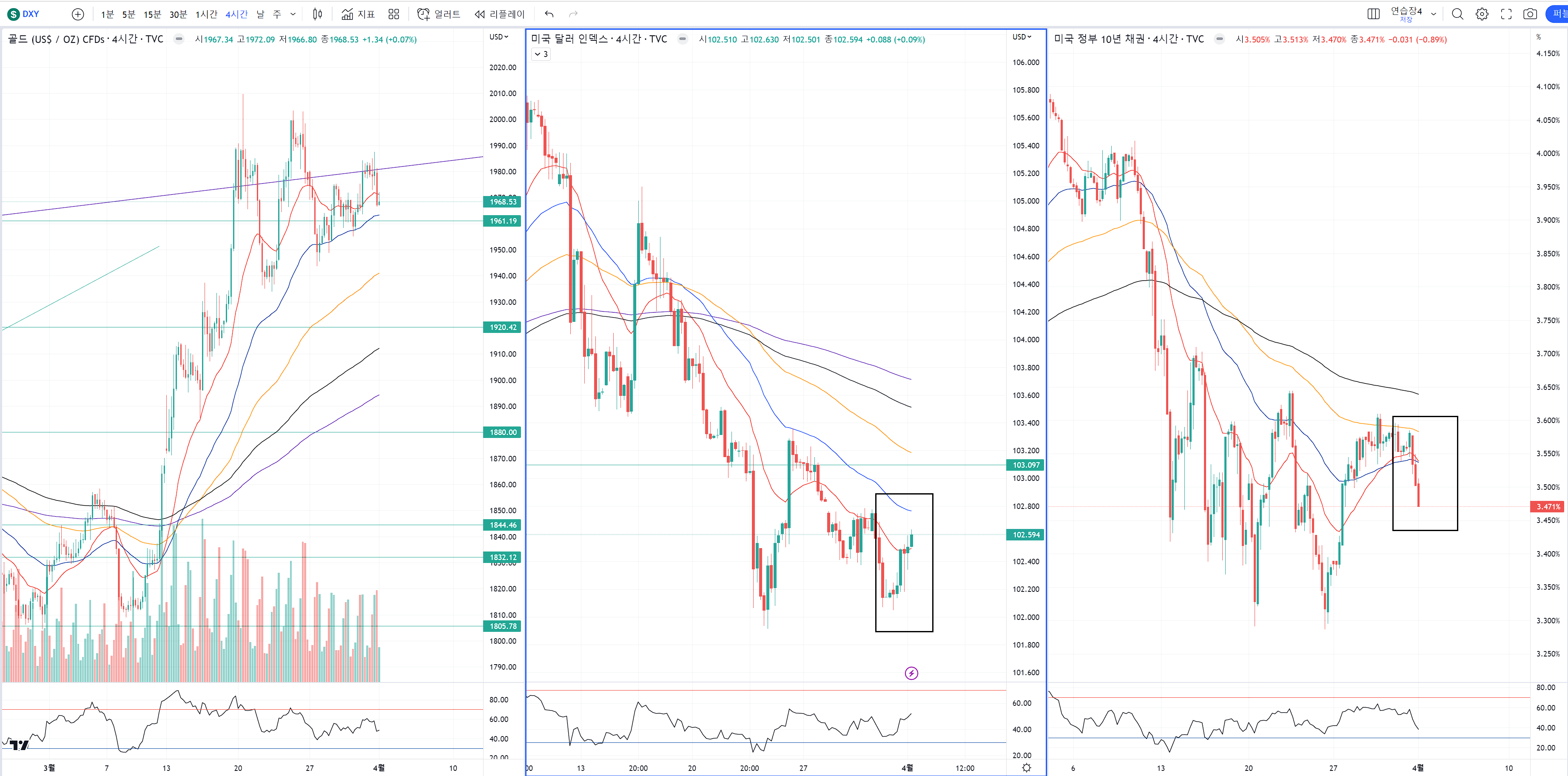 최근 흐름을 보면 잠깐이나마 금, 달라, 국채가 커플링 하는 상황이 나오기도 하지만