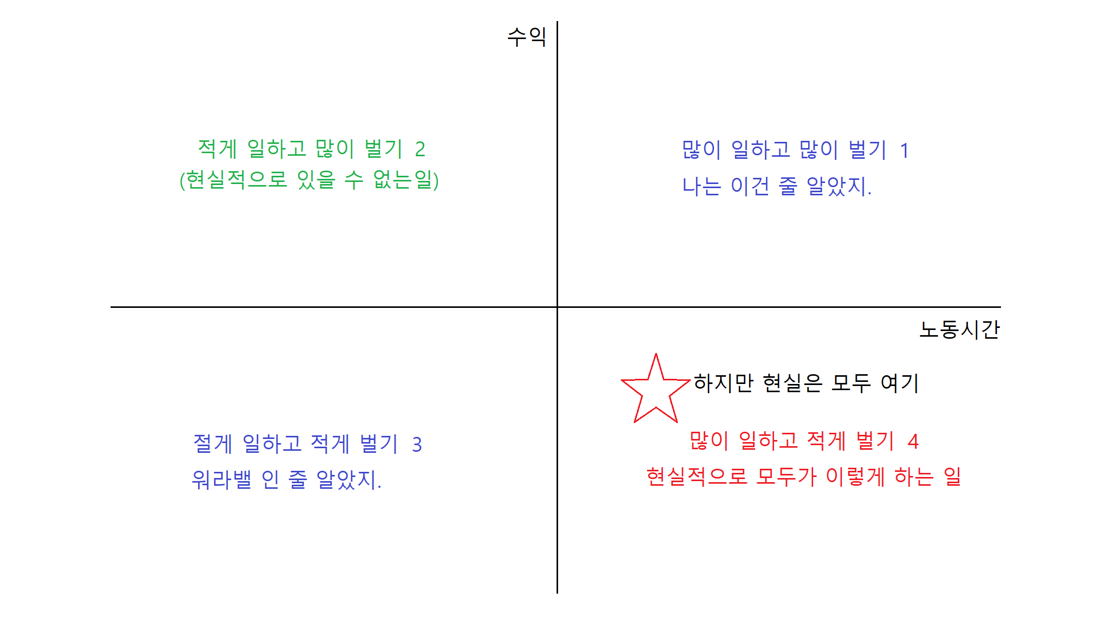 이 와중에 4번 적게 일하고 적게 번다는 선택지는 없습니다.