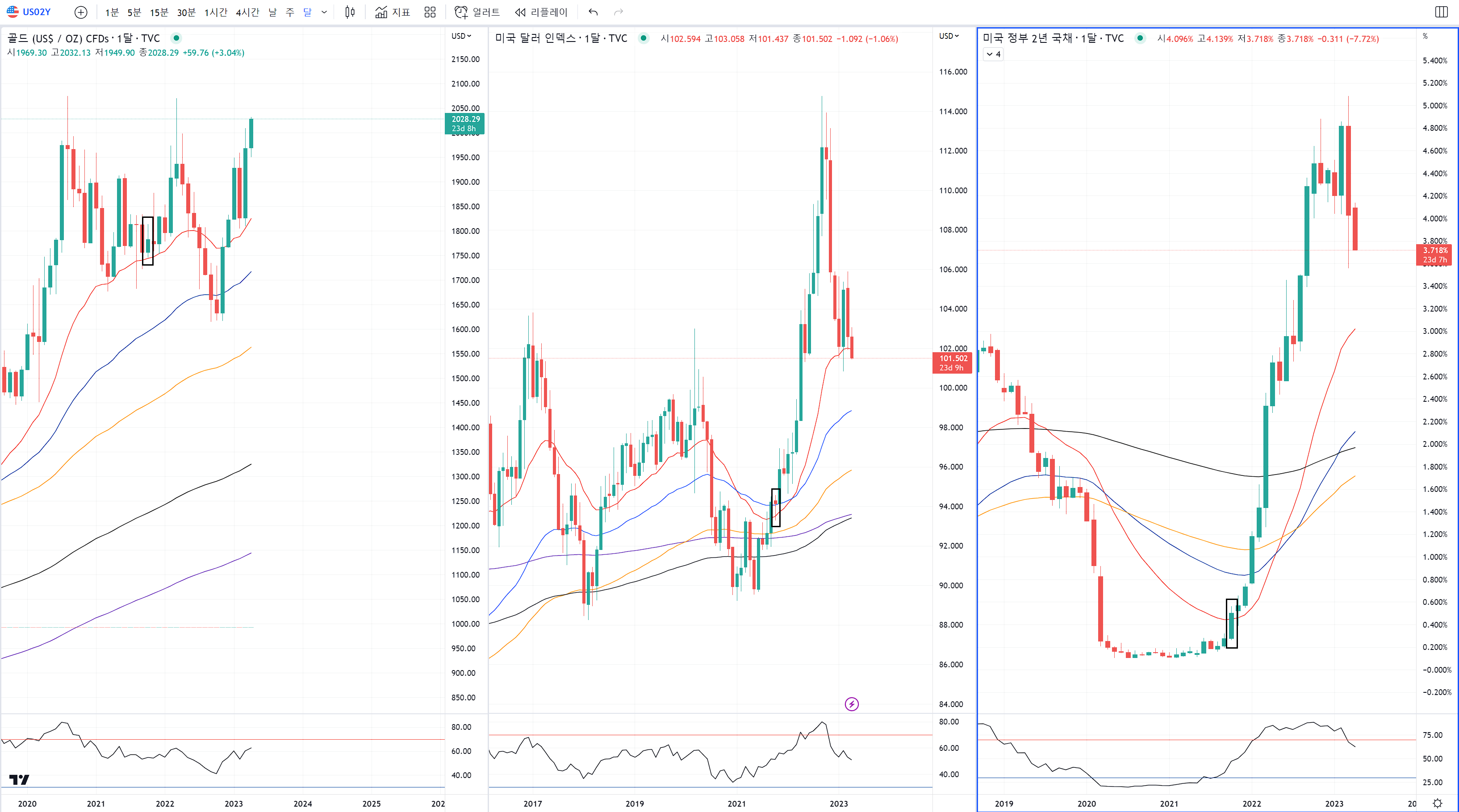 금이 상승하는데 달라까지 상승하면서 국채금리가 하락을 하면서