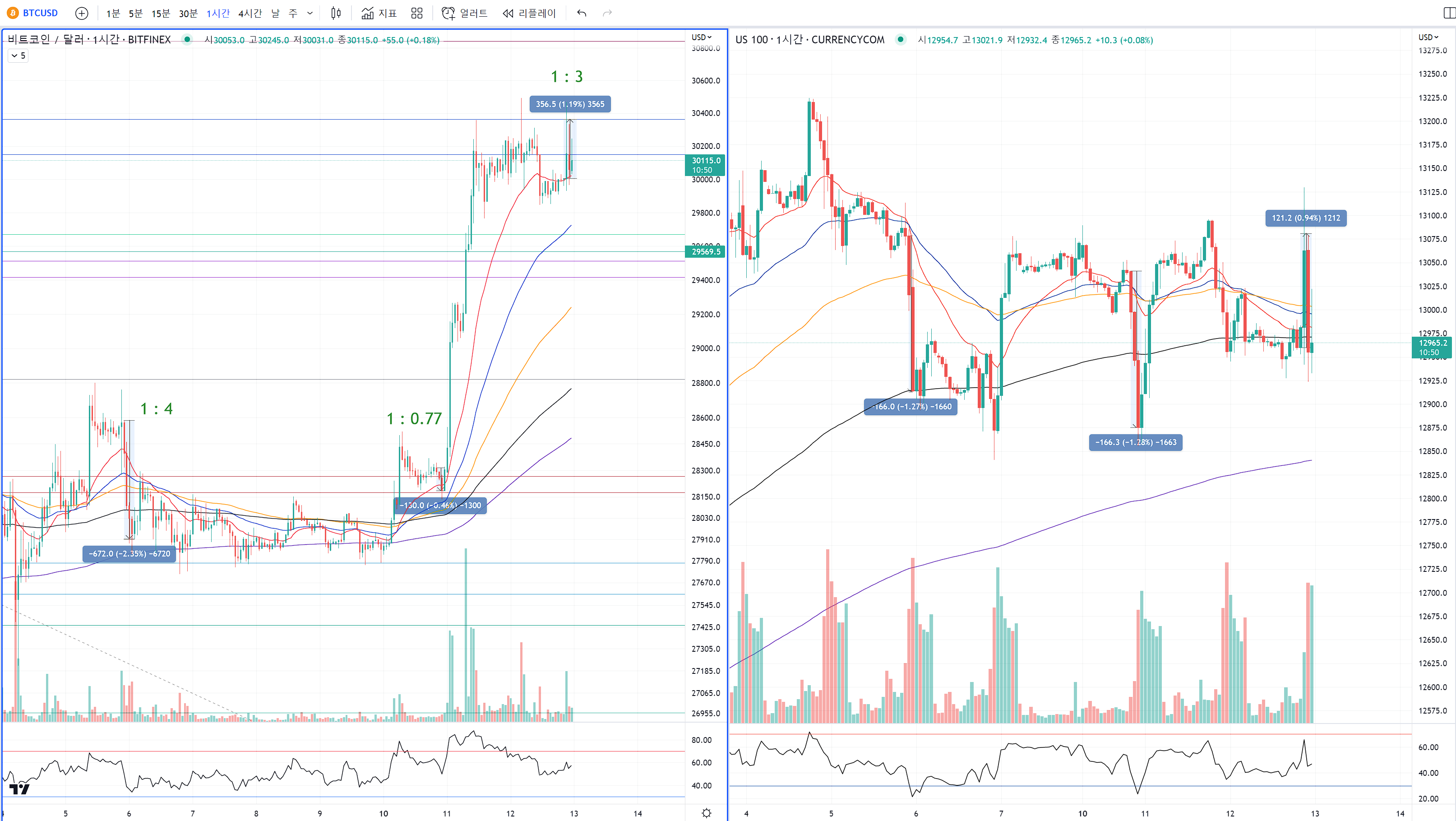 기왕 교환비 사용한김에 간만에 비트코인과 나스닥쪽도 교환비 활용해보자면
