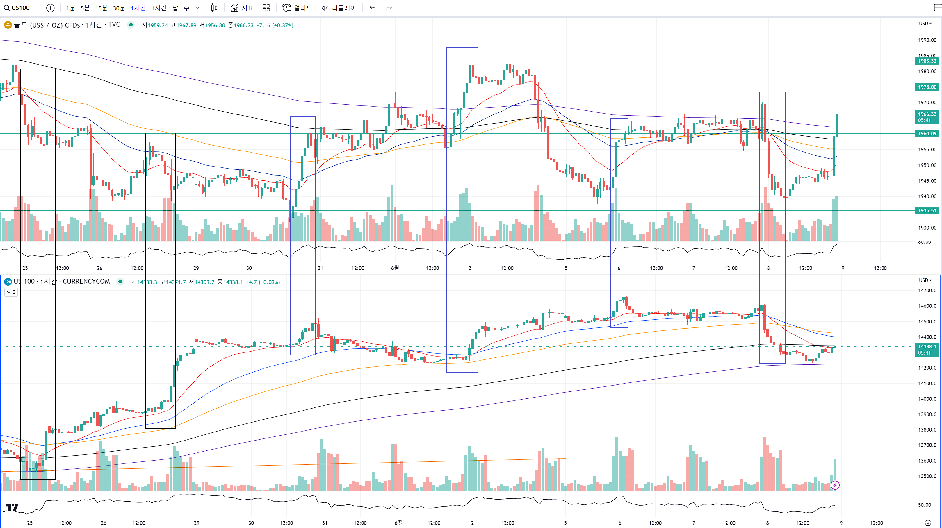그때 골드와 나스닥을 같이 확인하며 방향을 잘 확인하세요.