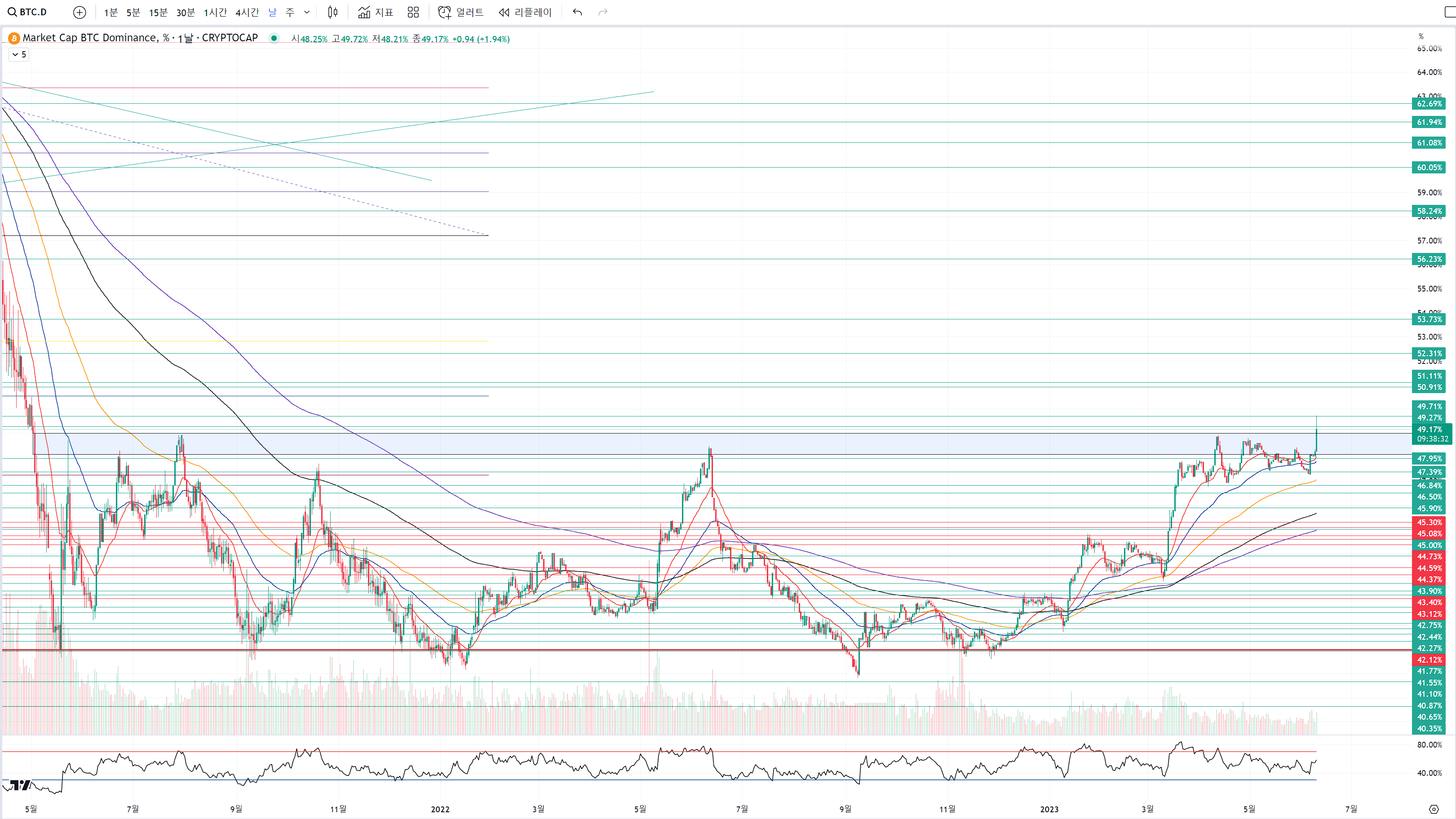 현재 도미넌스가 약 2년 간 횡보만 했던 구간에서