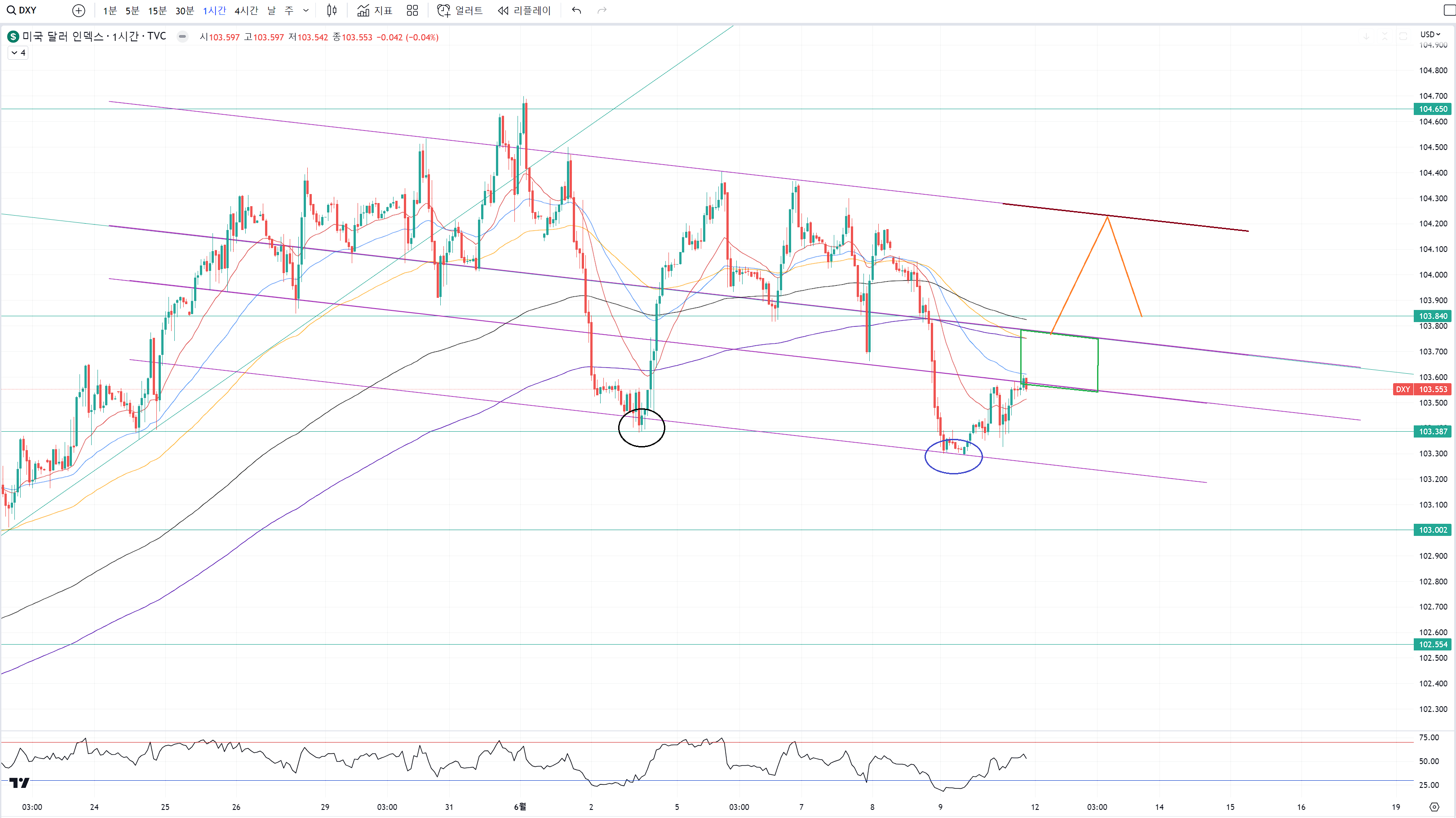 그리고 103.8을 지켜주고 다시 반등할때서야