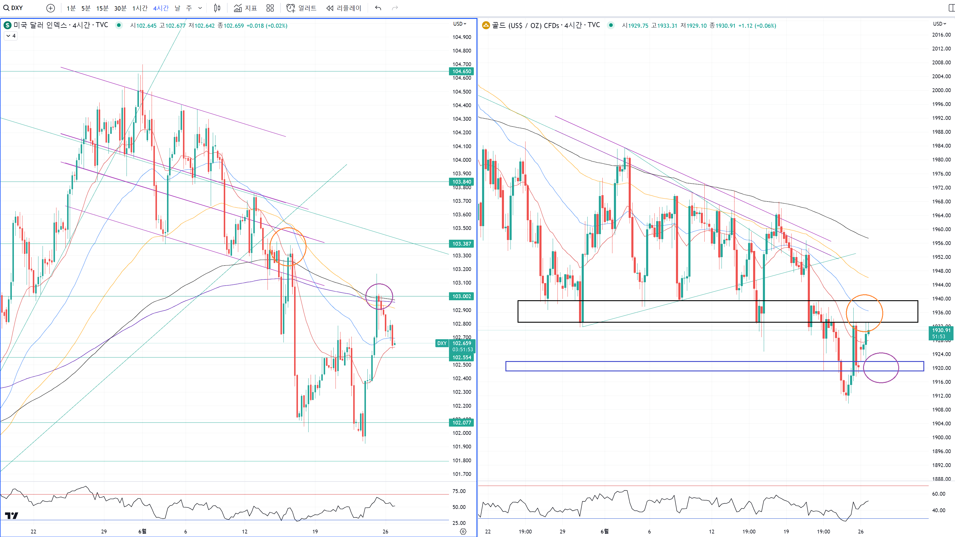 당장은 골드가 1920을 무너뜨릴때가 달라가 103을 돌파하는 건데