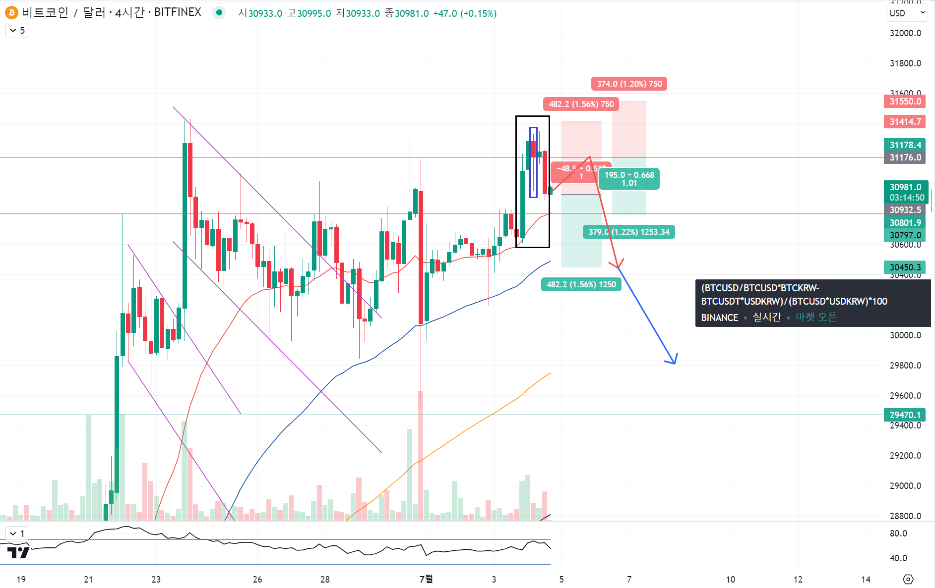 하락에도 매수세가 강하면 30800에서 반등이 나올 수 있어서