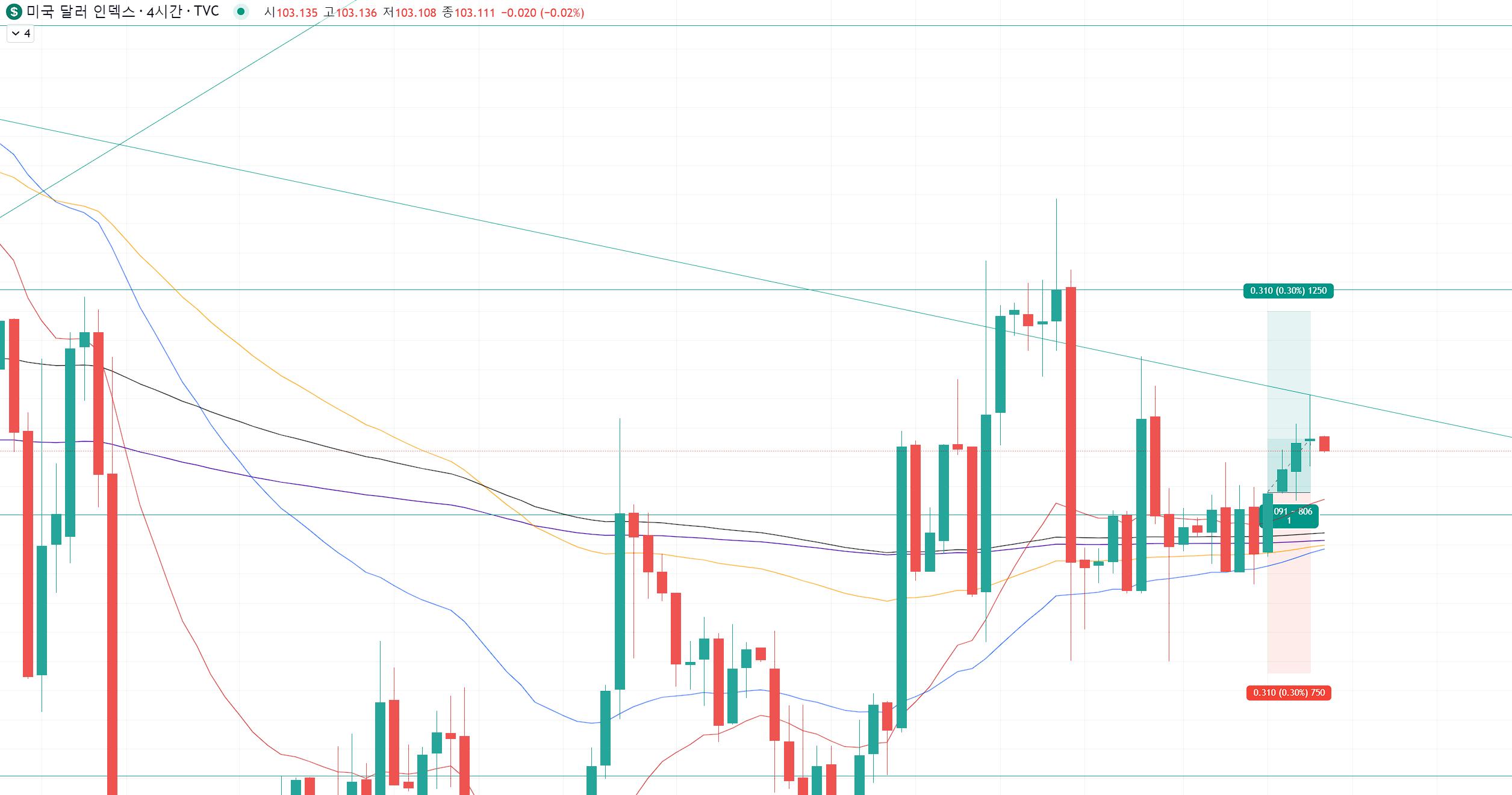 다음 출발선인 103.387보다 익절 목표가가 아래에 있기 떄문에