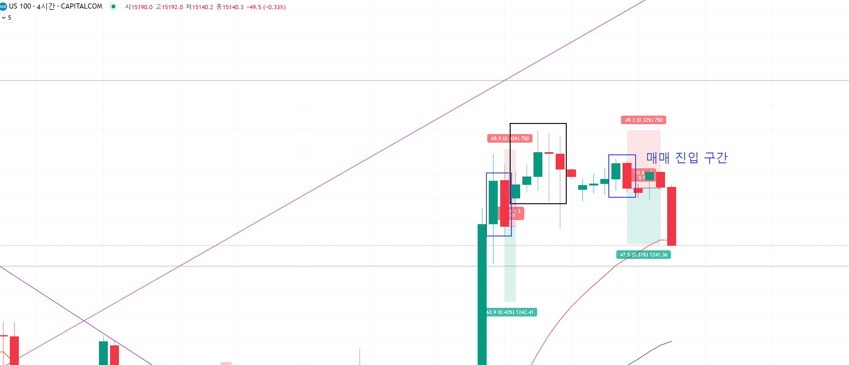 파랑색 동그라미에서 실제 매매 진입 구간에서 저항이 나오고