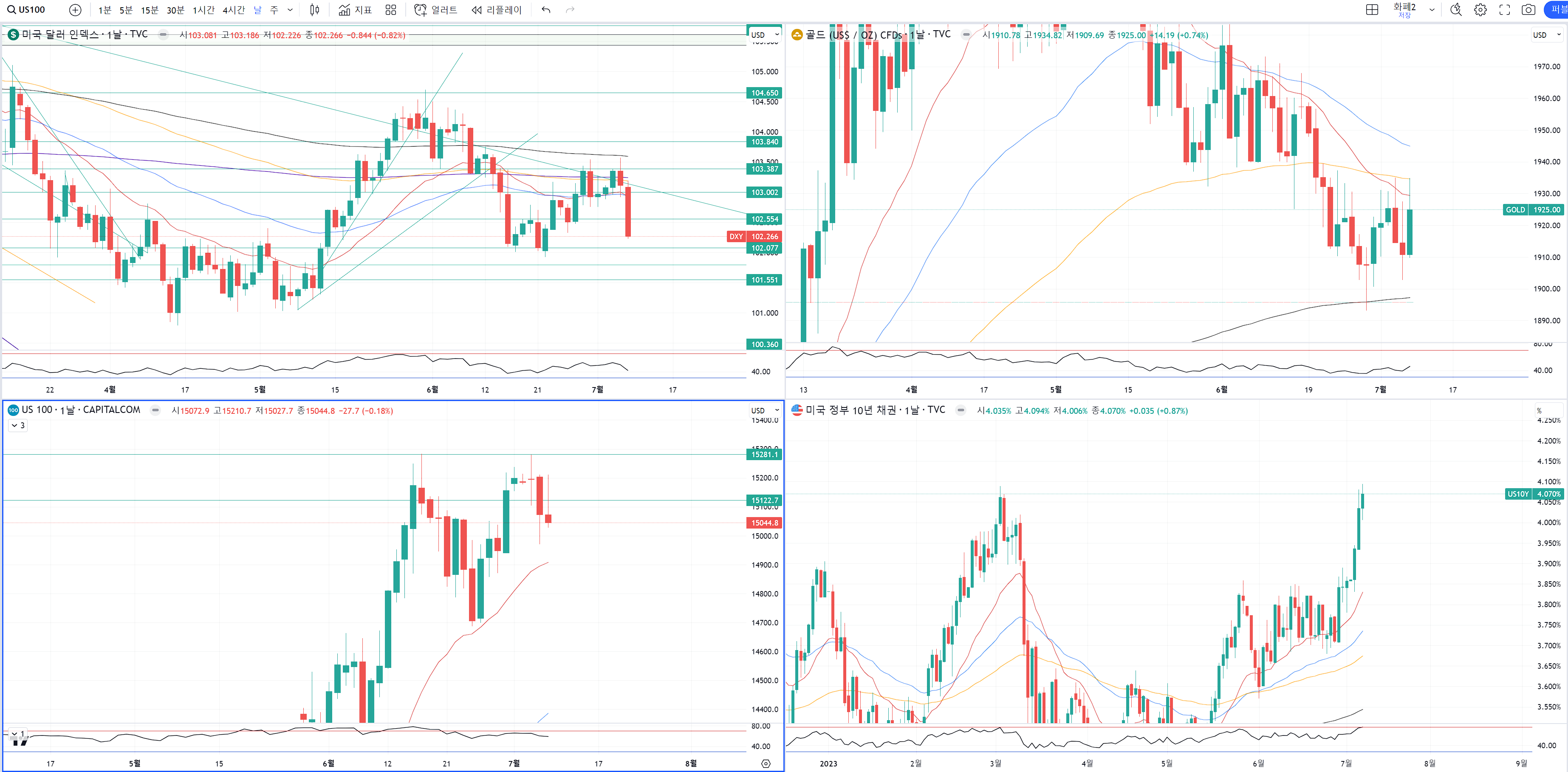 달라 / 골드 / 나스닥 / 미국 10년 채권
