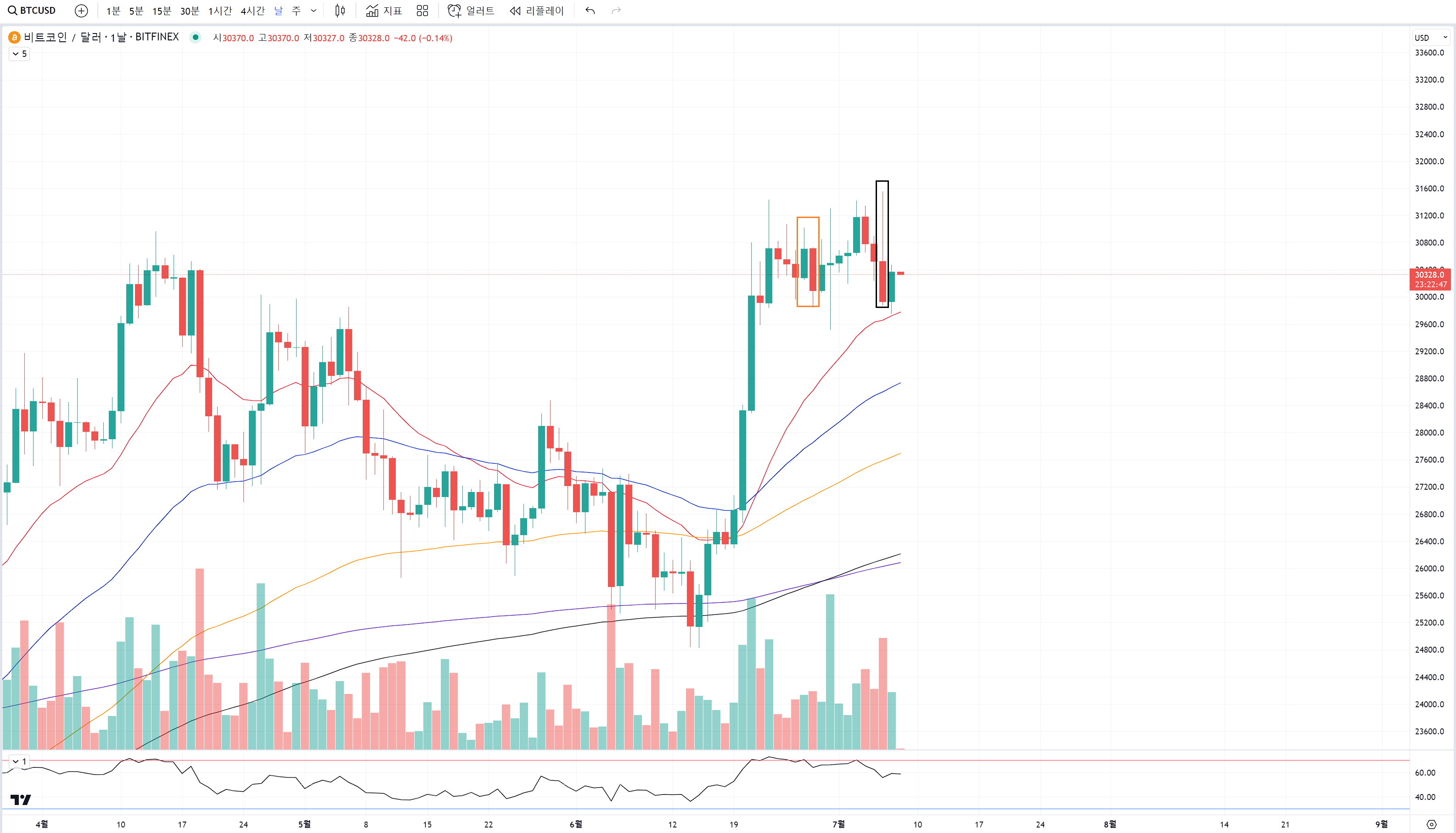 31000이라는 주요 저항 구간 계속 저항을 받고 있는 와중에