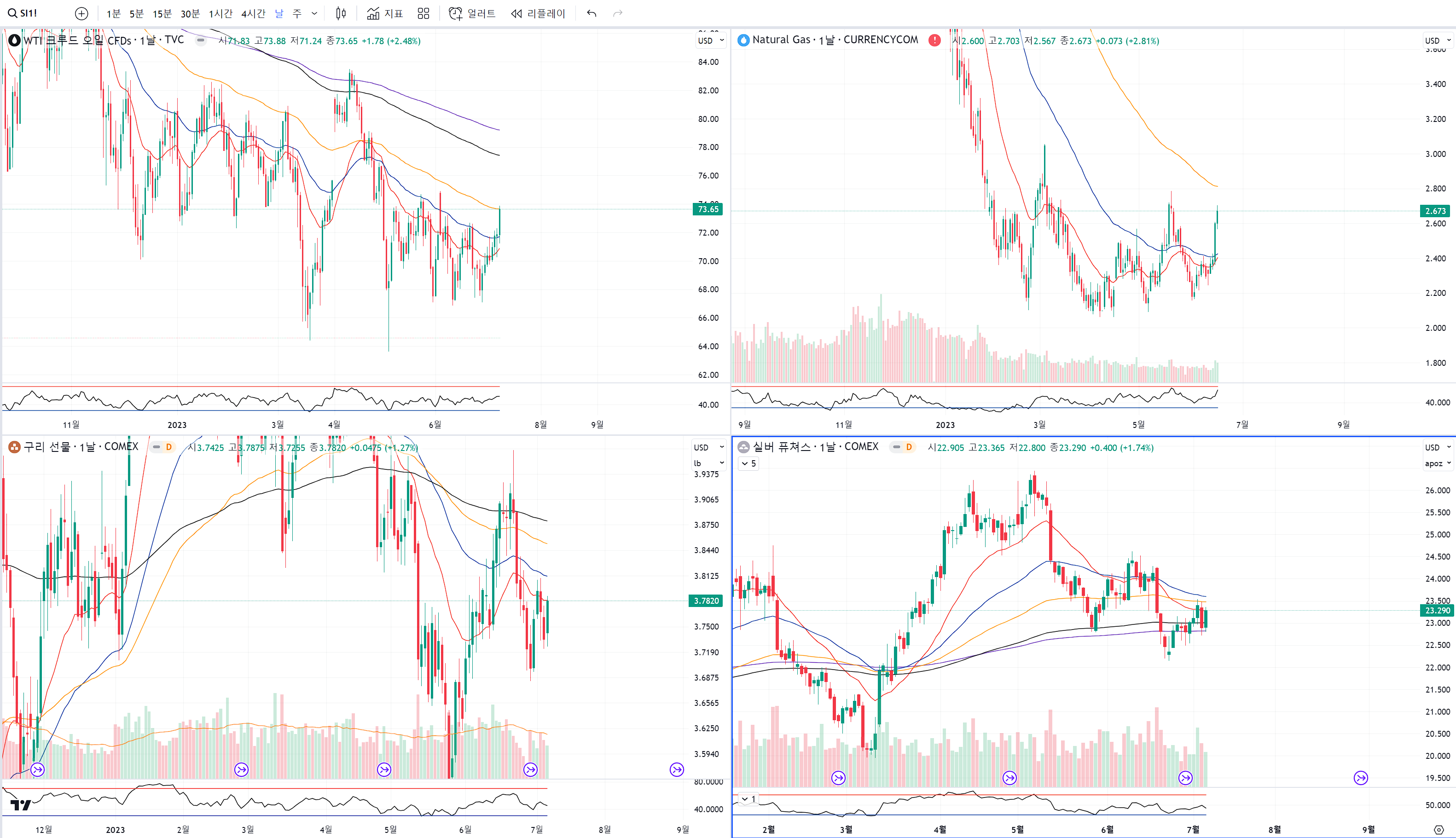 구리와 은은 금의 상승만큼은 갔으면서 별다른 저항 모습도 안 보여준 금속입니다.