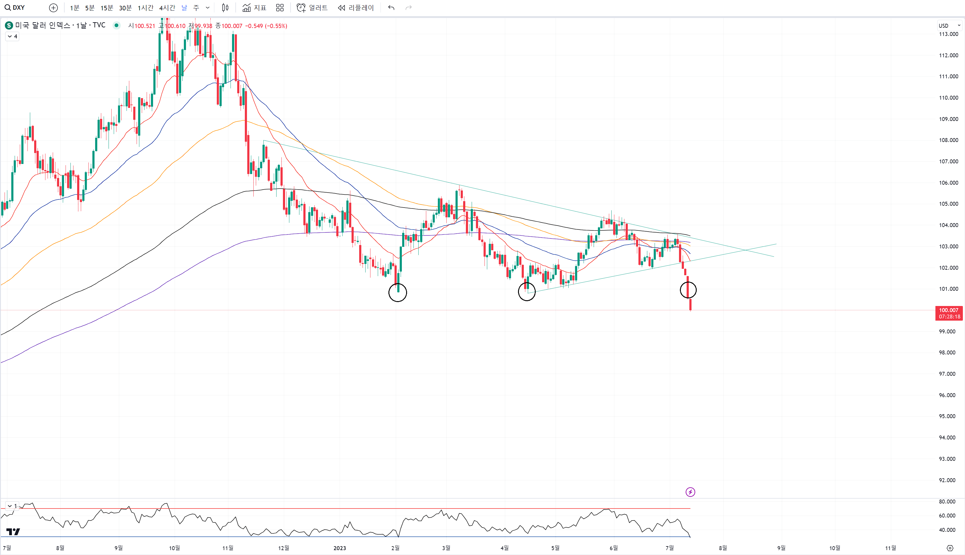 오늘 달라가 일봉상 트리플 바텀에서 무너지는걸 확정 지어주자