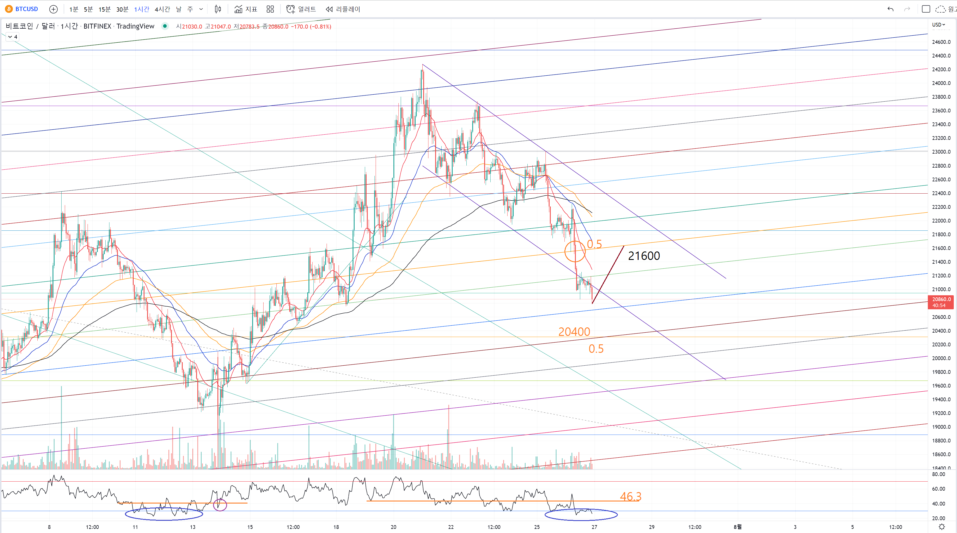 그때 rsi가 46.3을 확실히 넘어주고 다시 지지해주는 모습까지 나오면