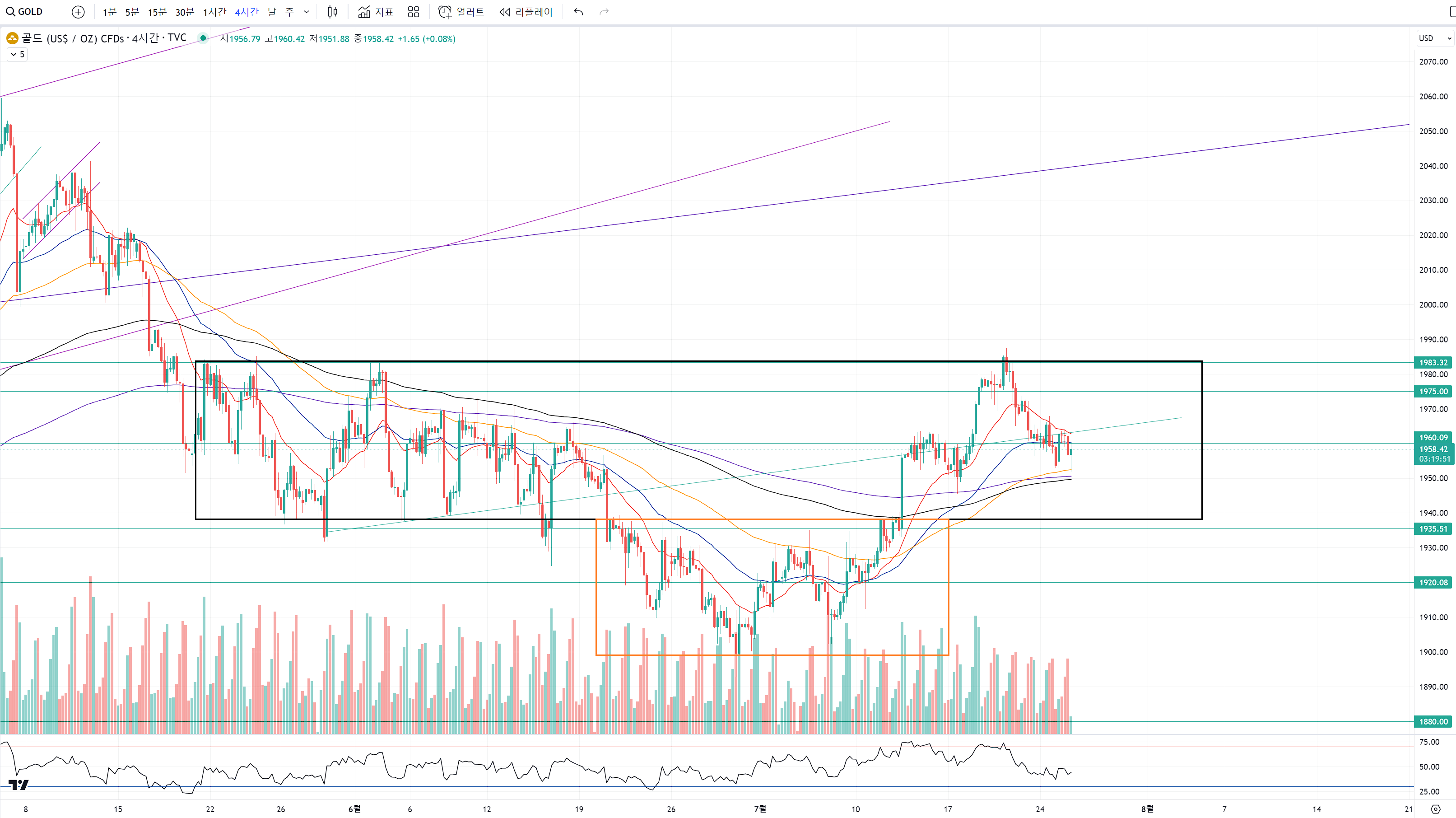 1938 정도가 무너지는 것이 아니면 골드는 매수세를 이어가기 좋습니다.