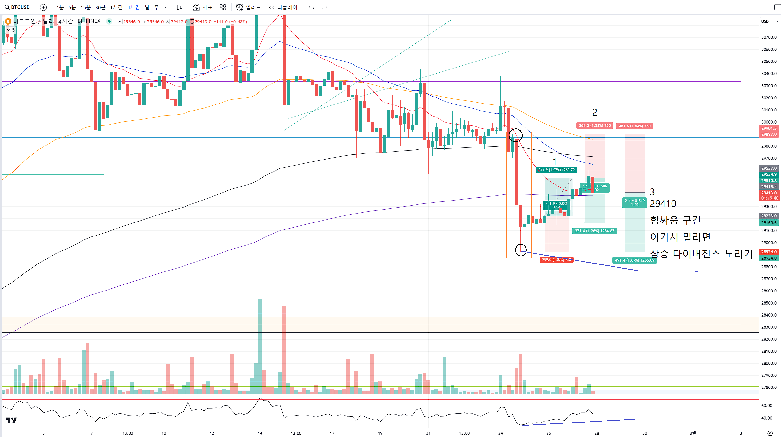 다시 캔들신호가 됐든 29230을 꾸준히 버텨주는 모습을 보여주며