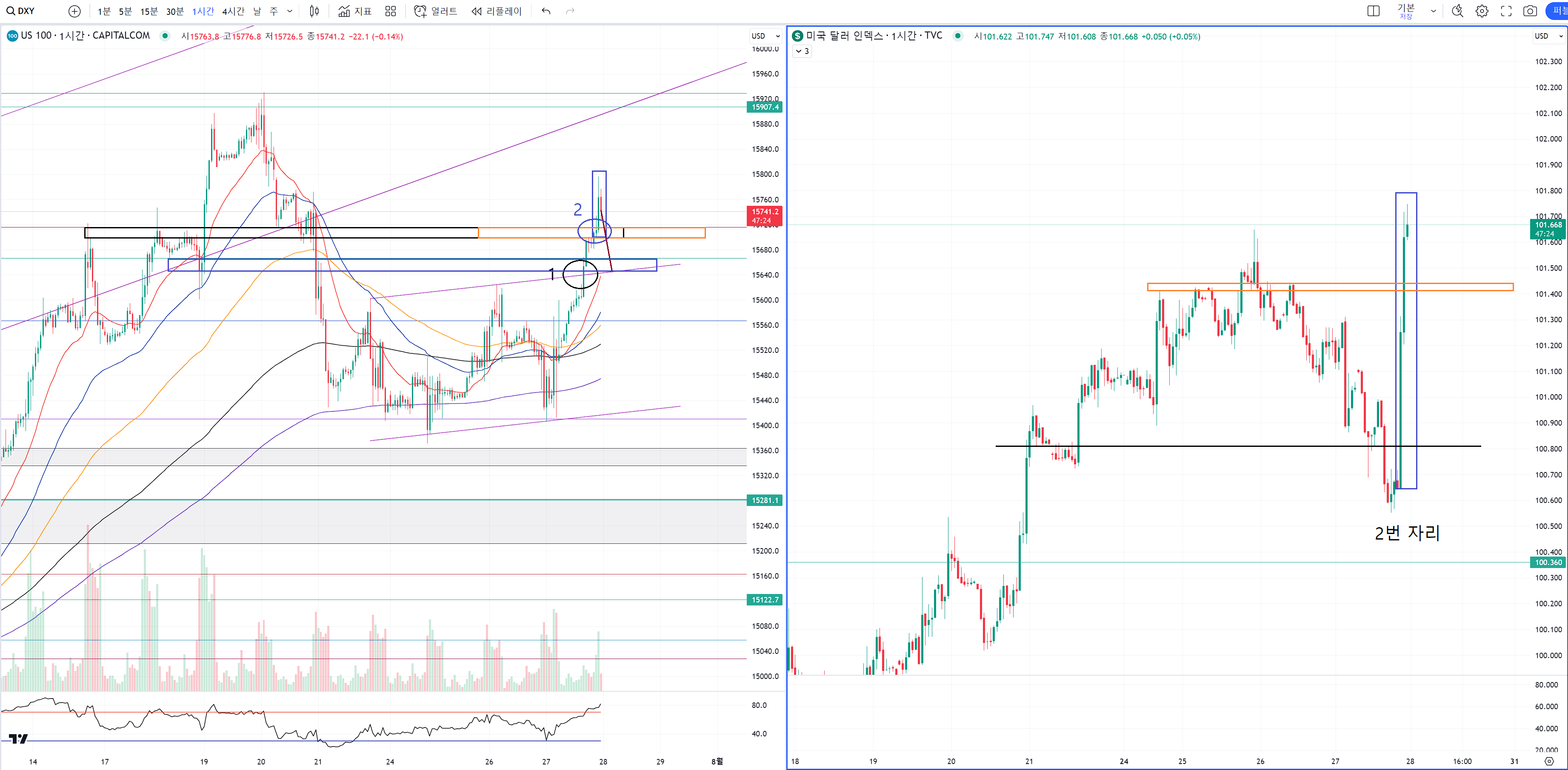 왼쪽은 나스닥이고 오른쪽은 달라입니다.