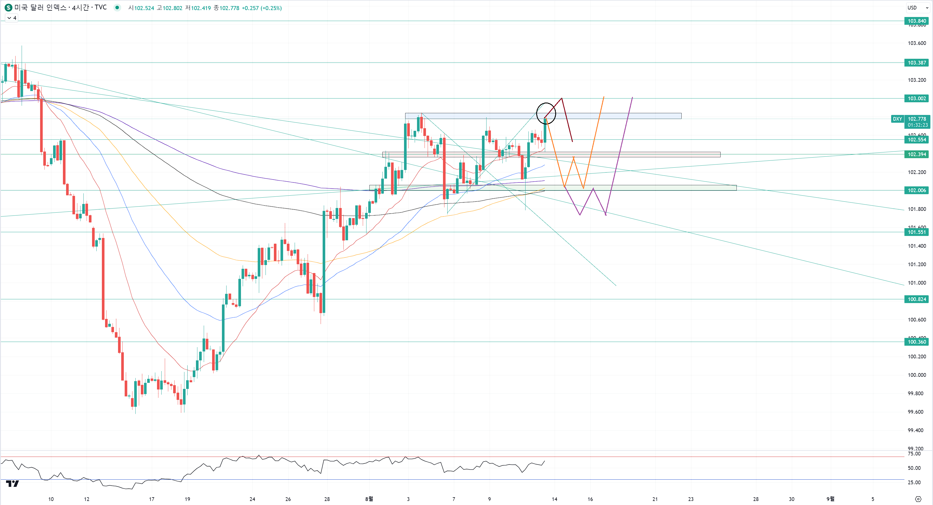 이 위에 있는 103은 7월 고점 근처 매물대 하단으로