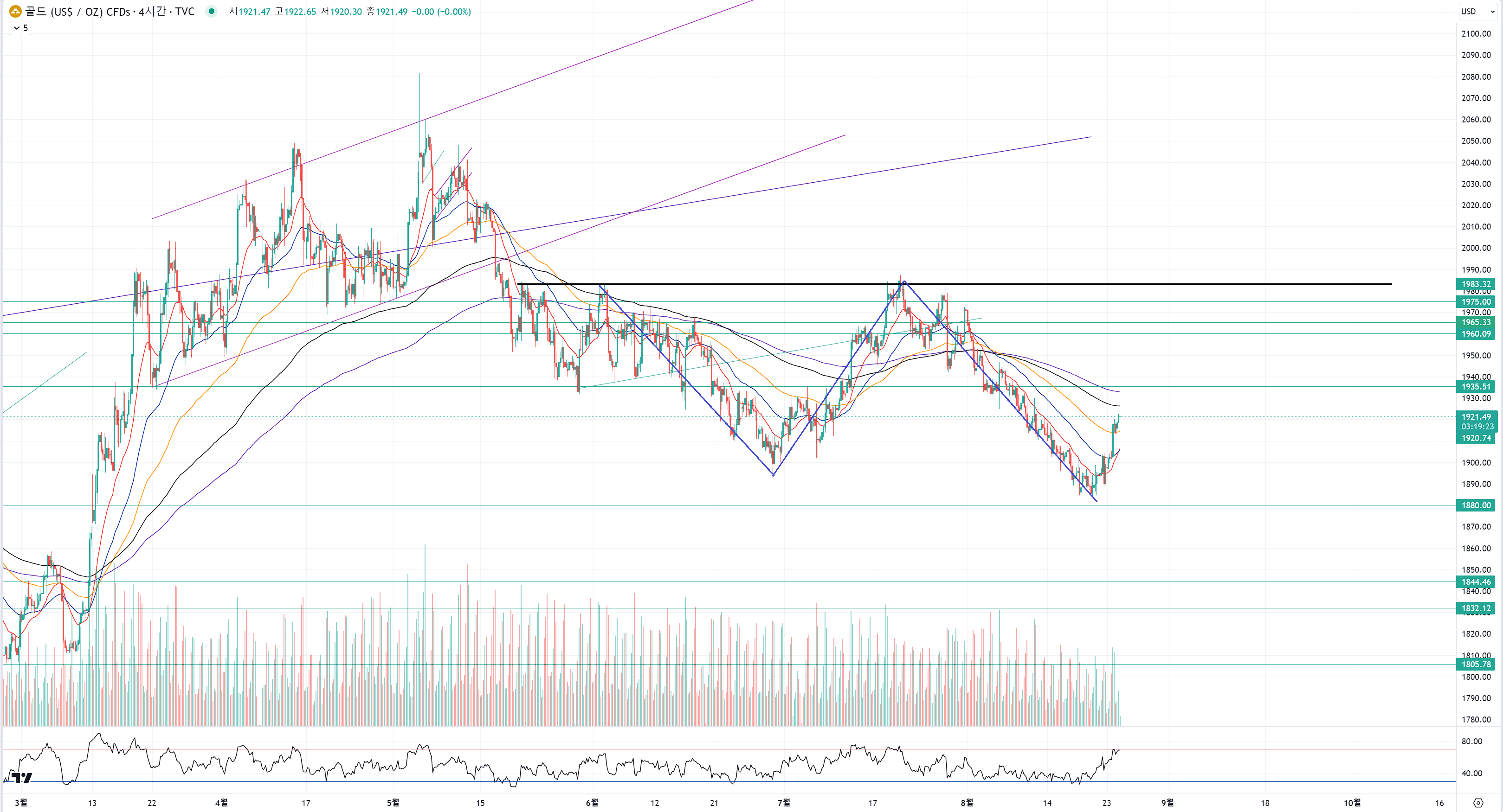 골드의 경우 1920을 돌파하면서 추가 매수세가 붙으면