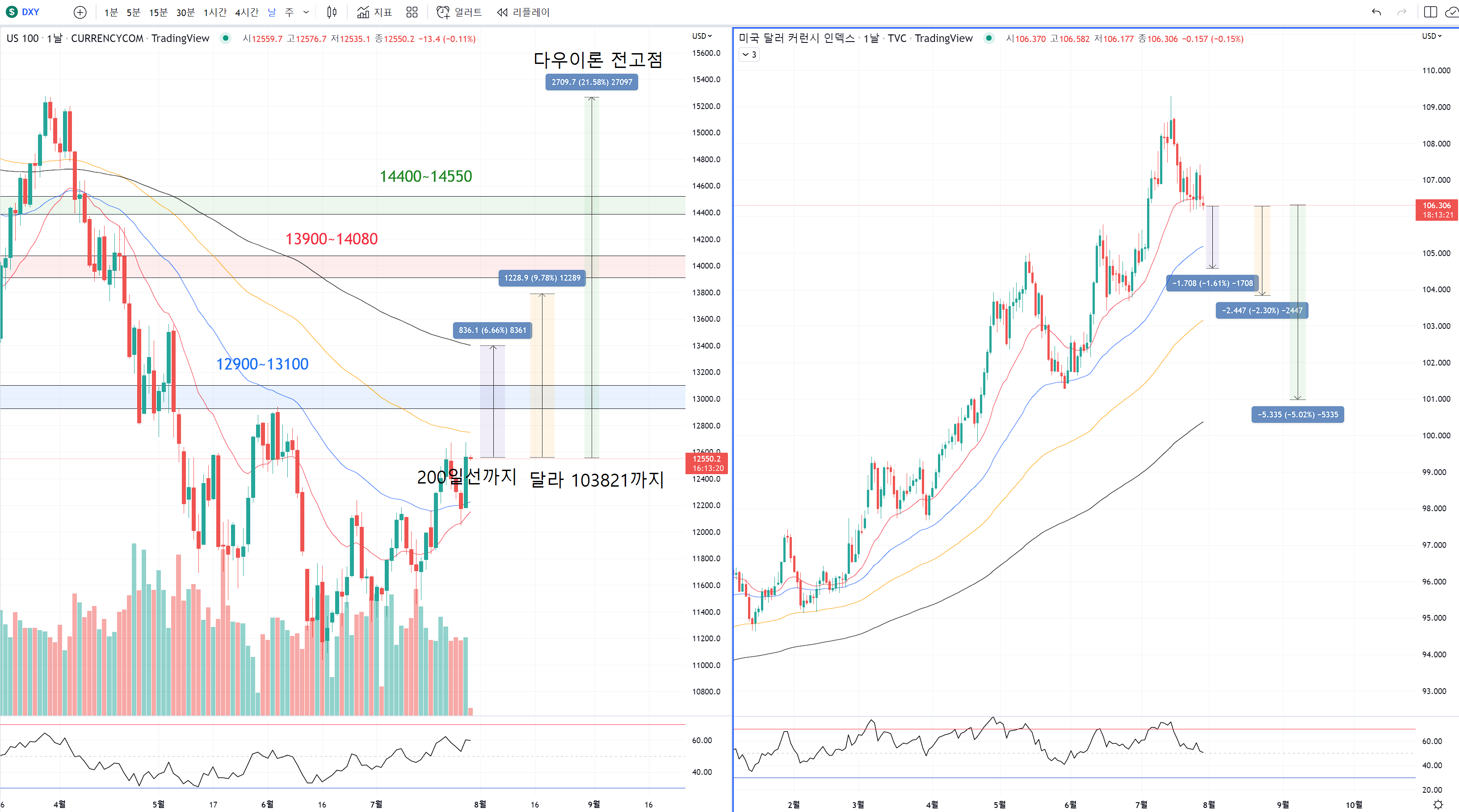 이러면 나스닥은 13800정도까지의 상승을 볼 수 있는데
