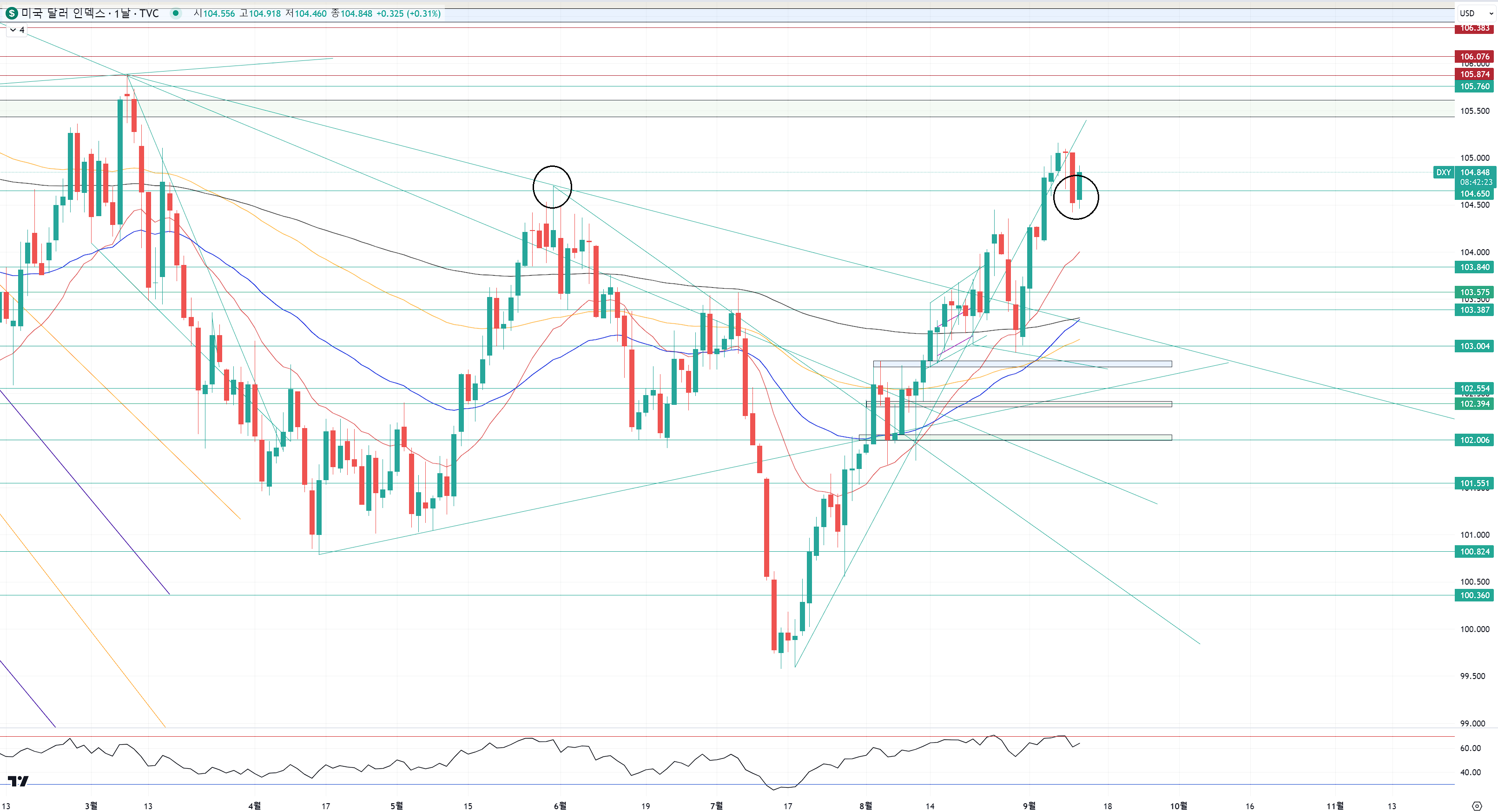 일단은 전고점 아래에 내려만와도 달라를 사려는 움직임이 있다는 것 정도만 확인하시면 좋아요.
