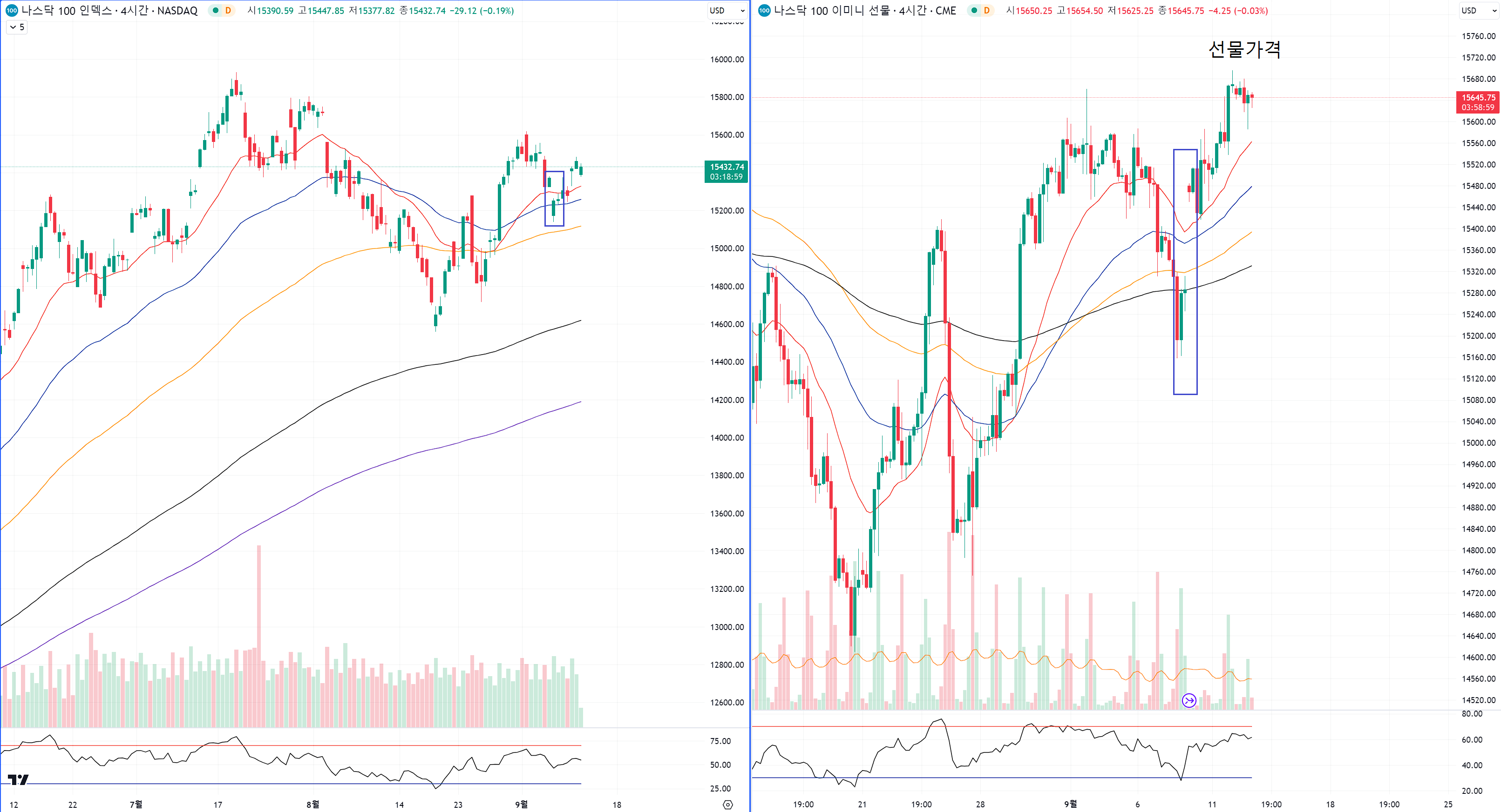 오른쪽은 CME 선물시장 차트예요.
