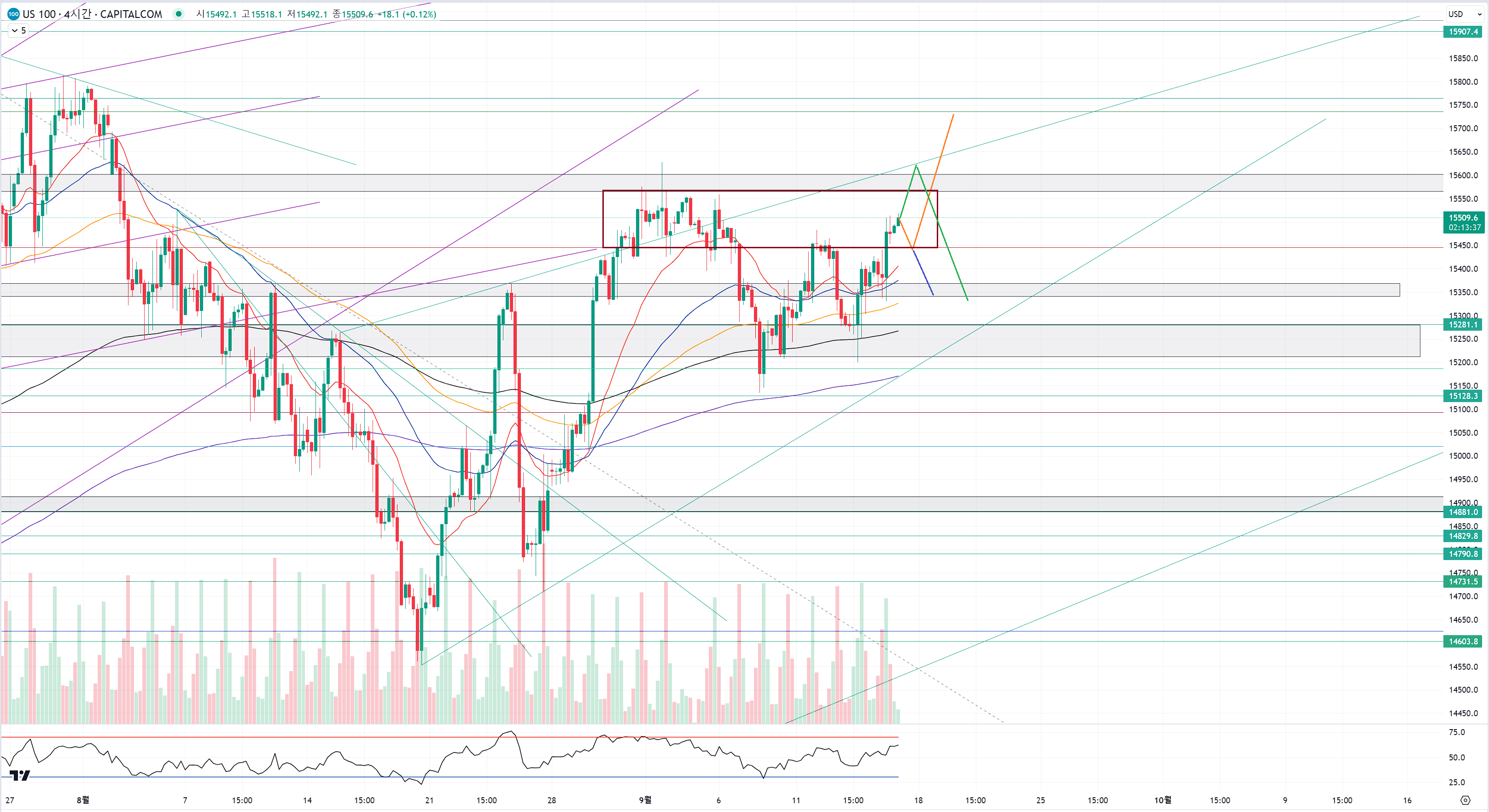 골드가 추가 상승 실패하고 달라가 기어이 고점 갱신을 향해 가면 나스닥의 조정도 더 길어질 수 있습니다.