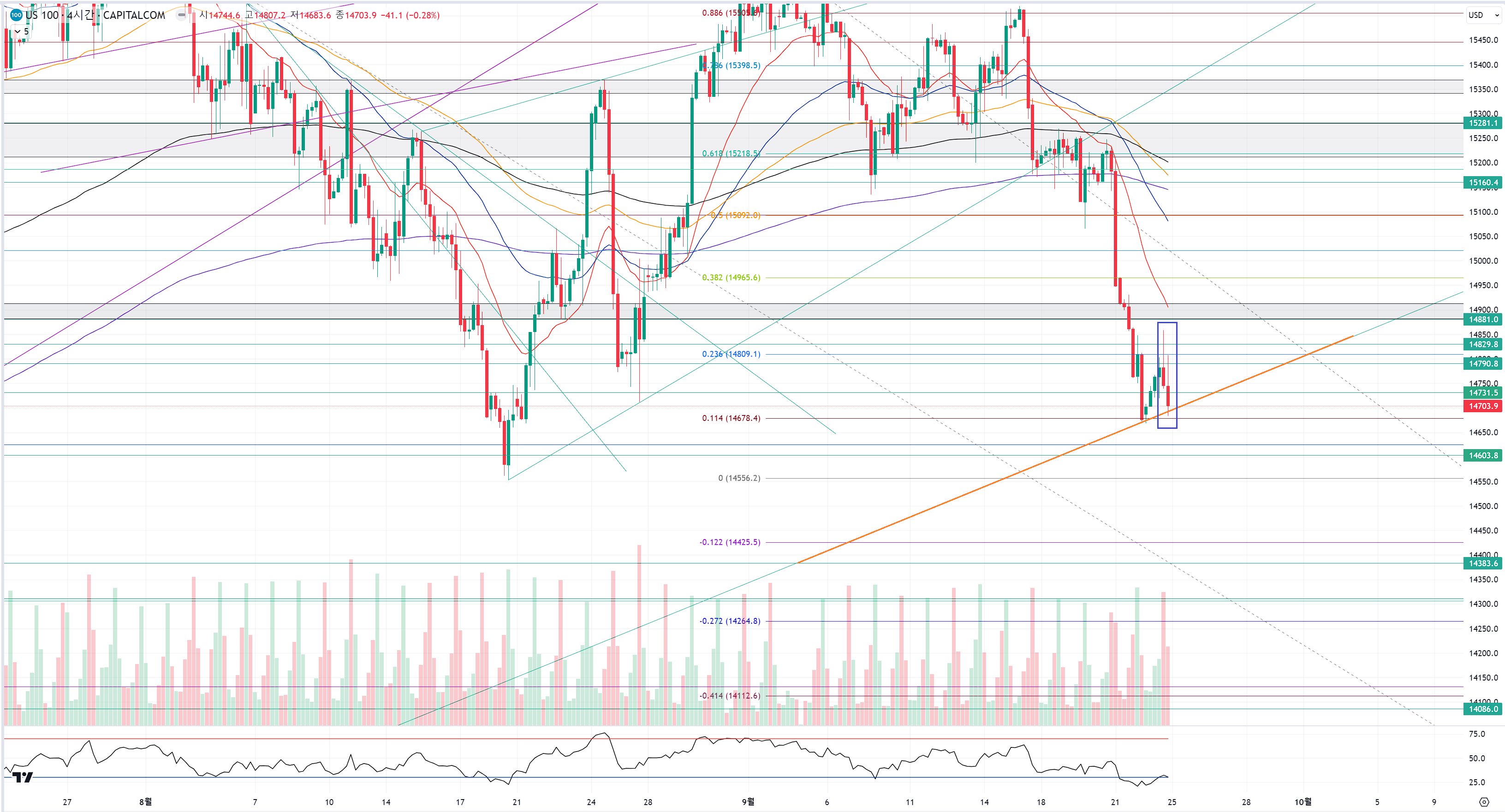 또 다른 불안 요소는 나스닥이 중요 지점에서 반등할 수 있는 위치이기 때문입니다.
