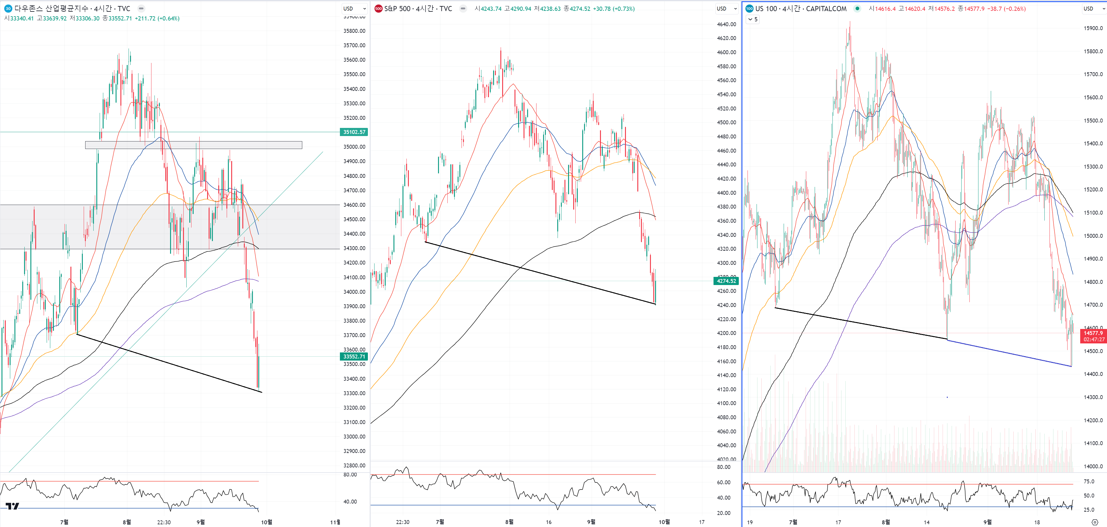 나스닥의 경우 고점과 저점을 둘 다 낮추는 걸 확정 지었습니다.