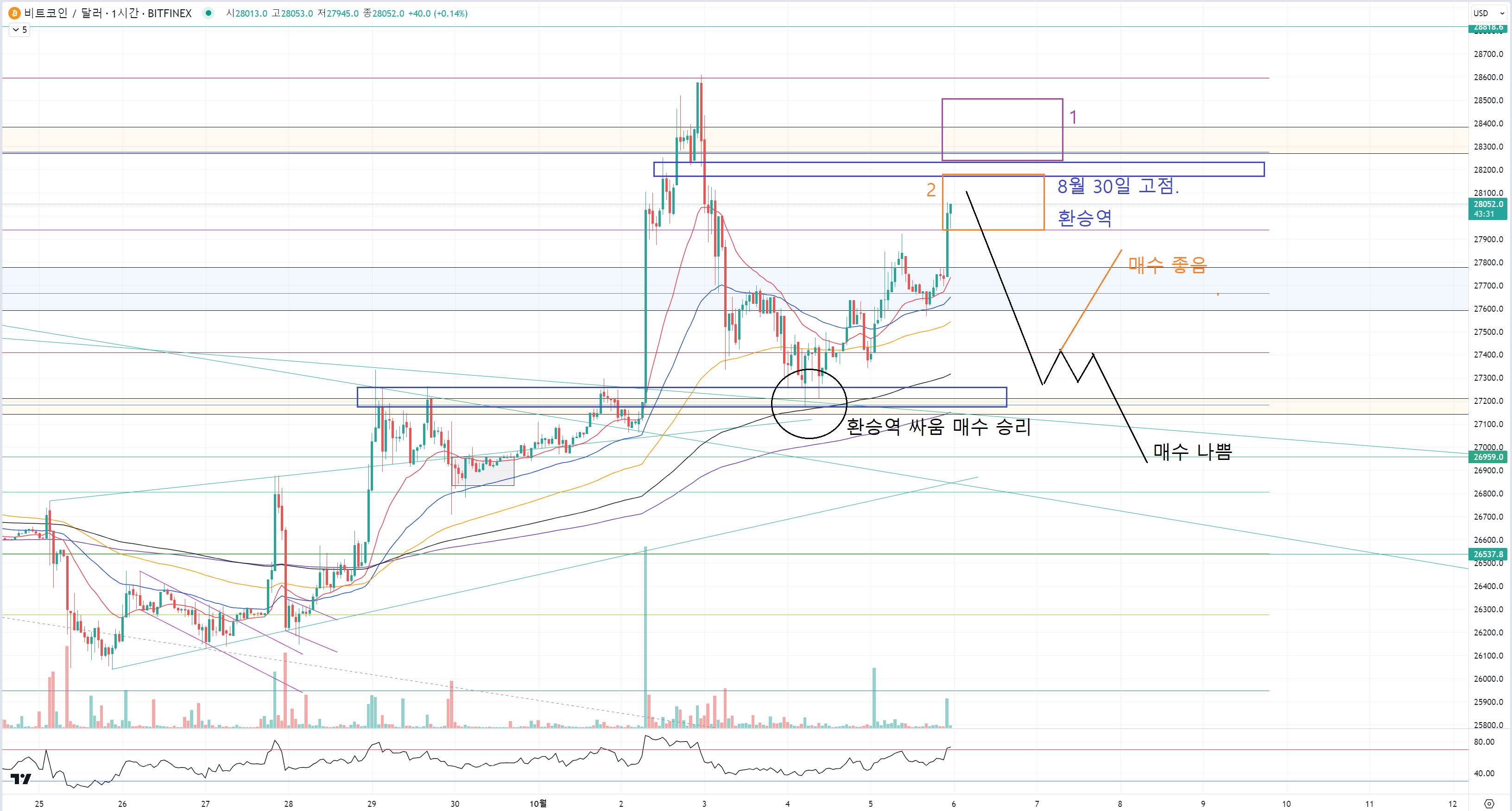 현재 지점에서 매수, 매도가 다시 한번 포지션 변경이나 추가 진입이 나올 시점이기 때문에